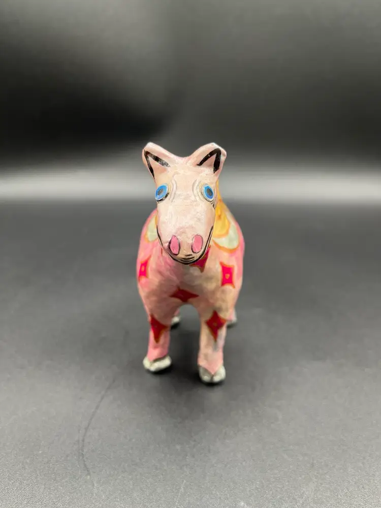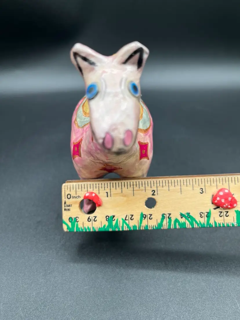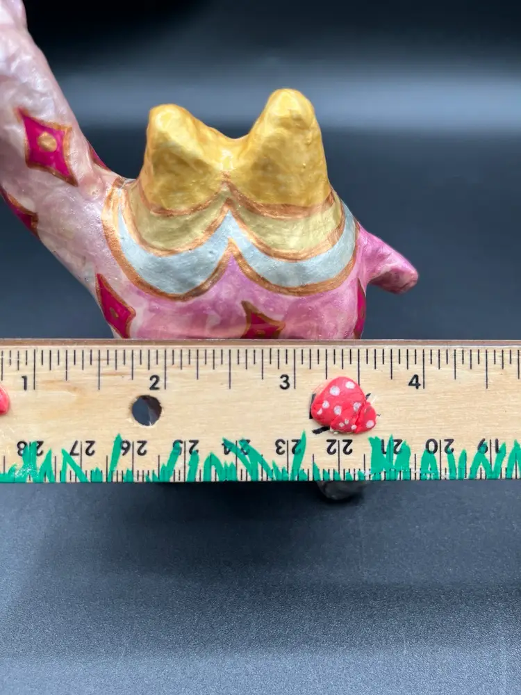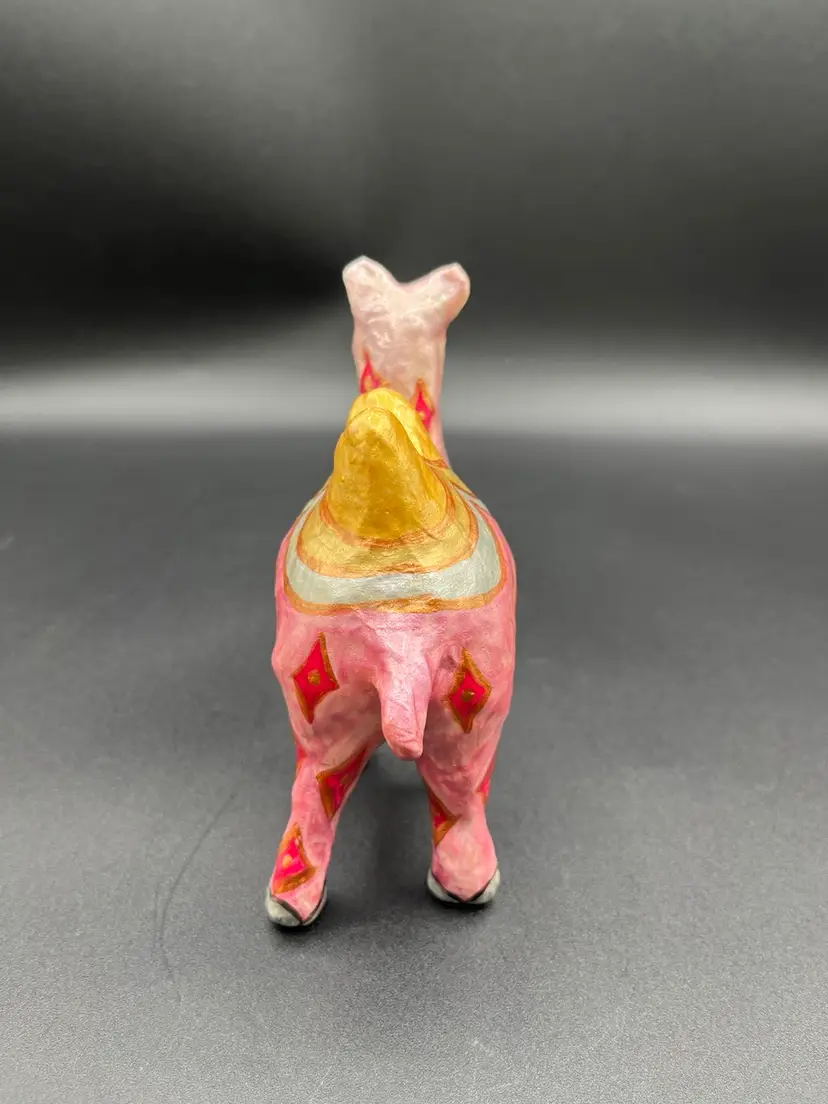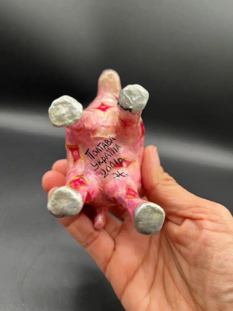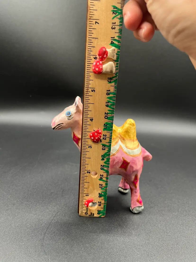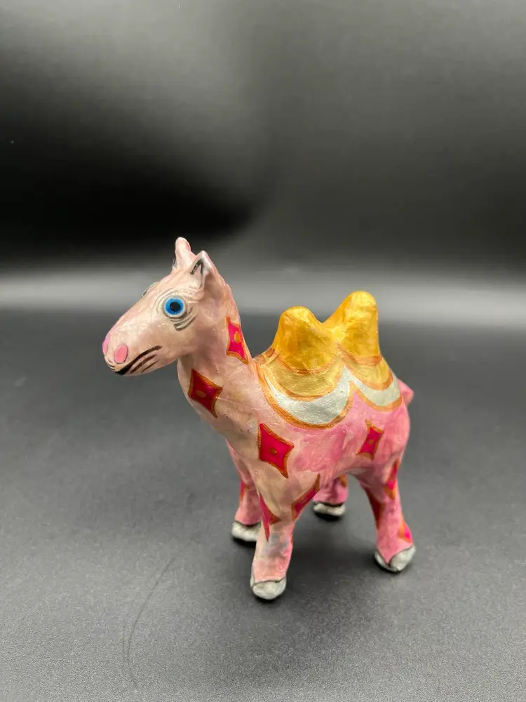 Ukrainian Papier Mache 2001 Folk Art Pink Hand Made Camel Rattle 4.5”