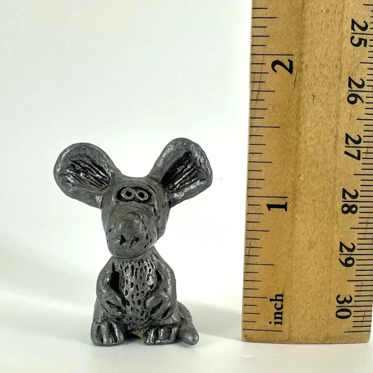 I named him Marcel! Small mouse with big ears made of pewter. Not marked. Measures approximately 1.5” tall.