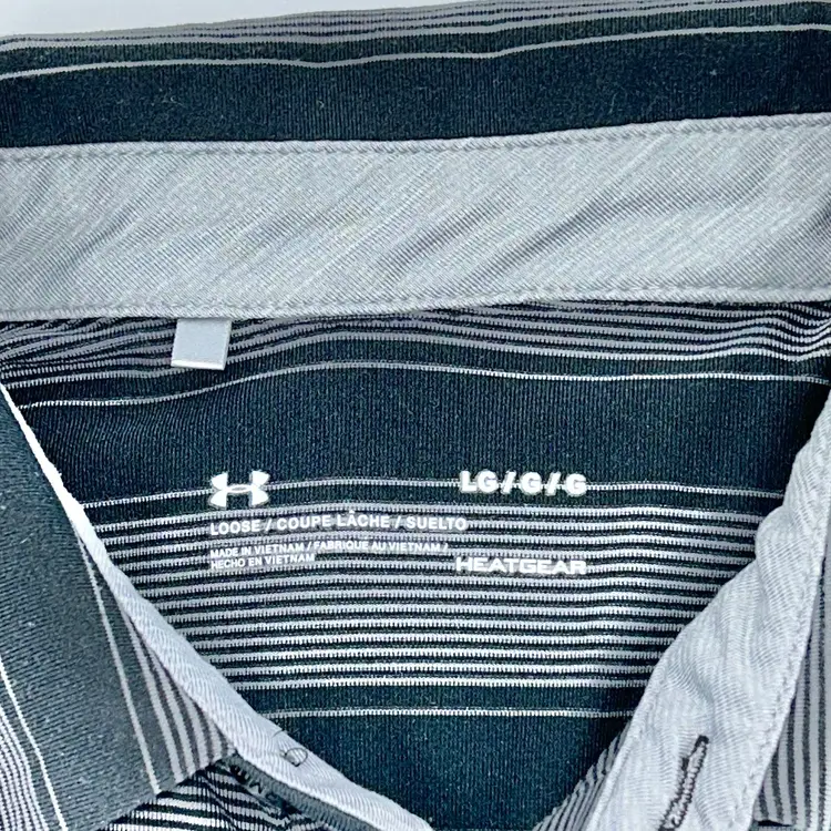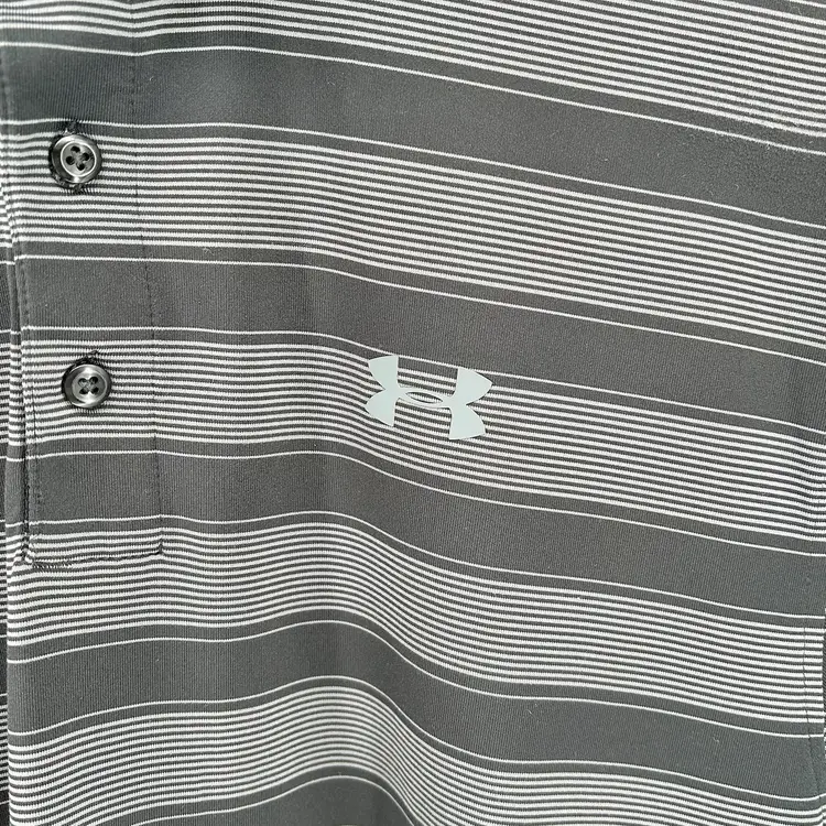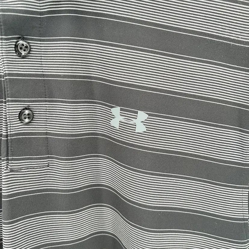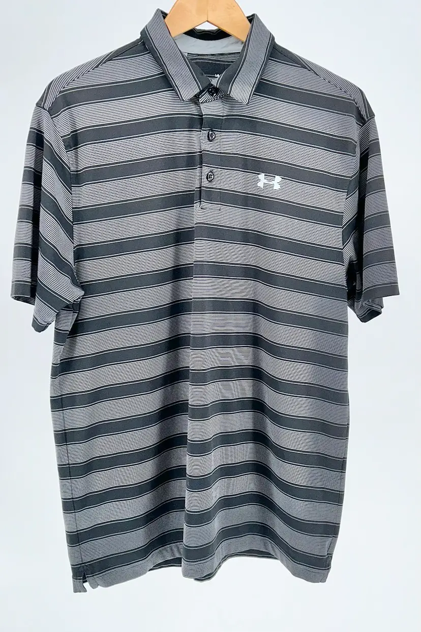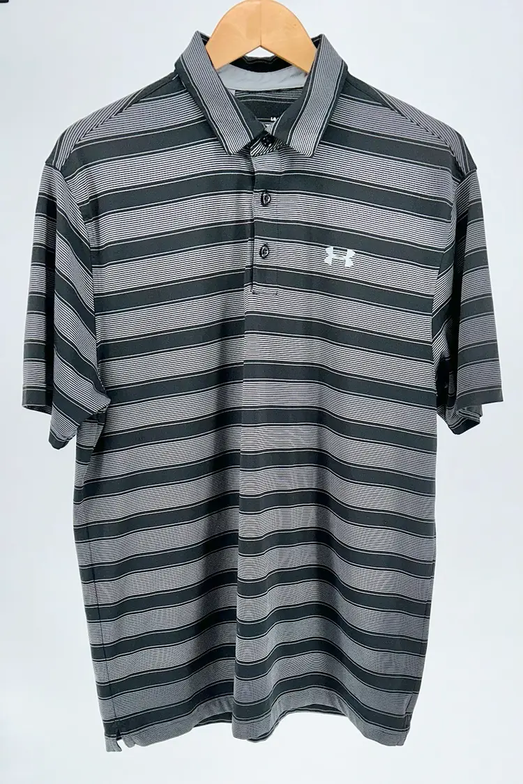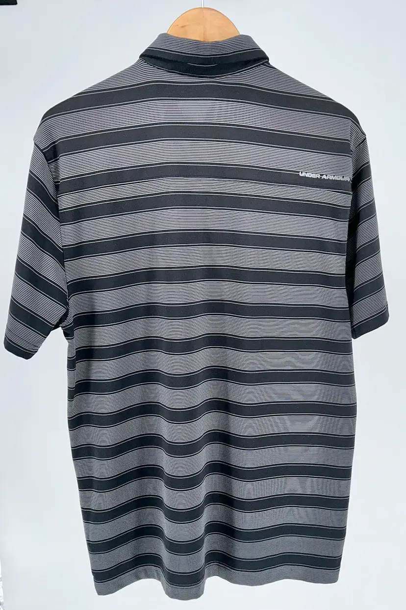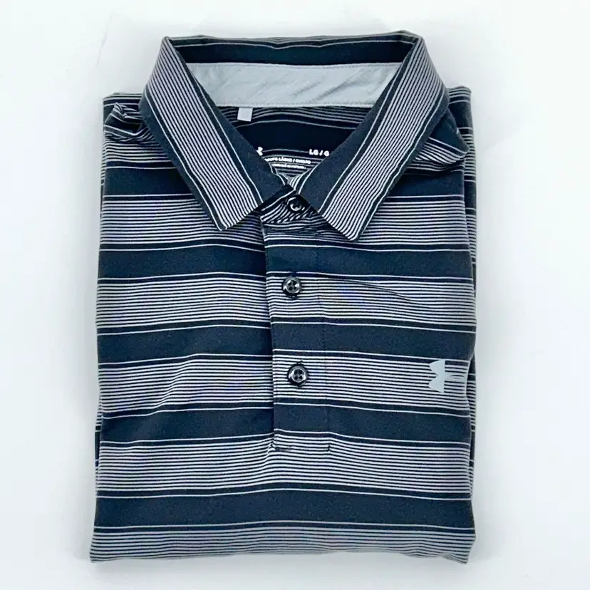 Pre-Owned Under Armor striped golf shirt. Excellent condition. Size Large.