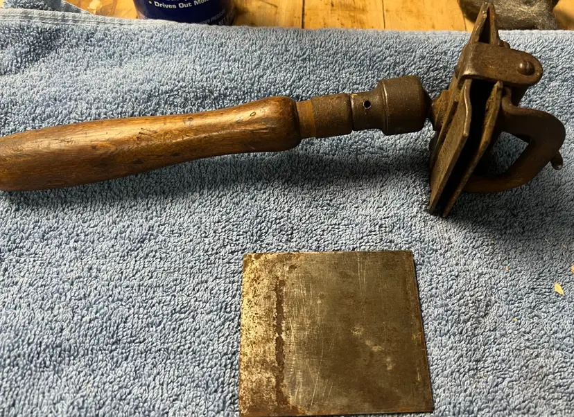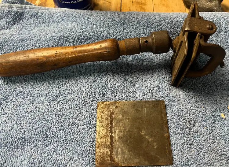 Unique style of box scraper. Could use a cleaning, but it locks tight and adjusts easily.