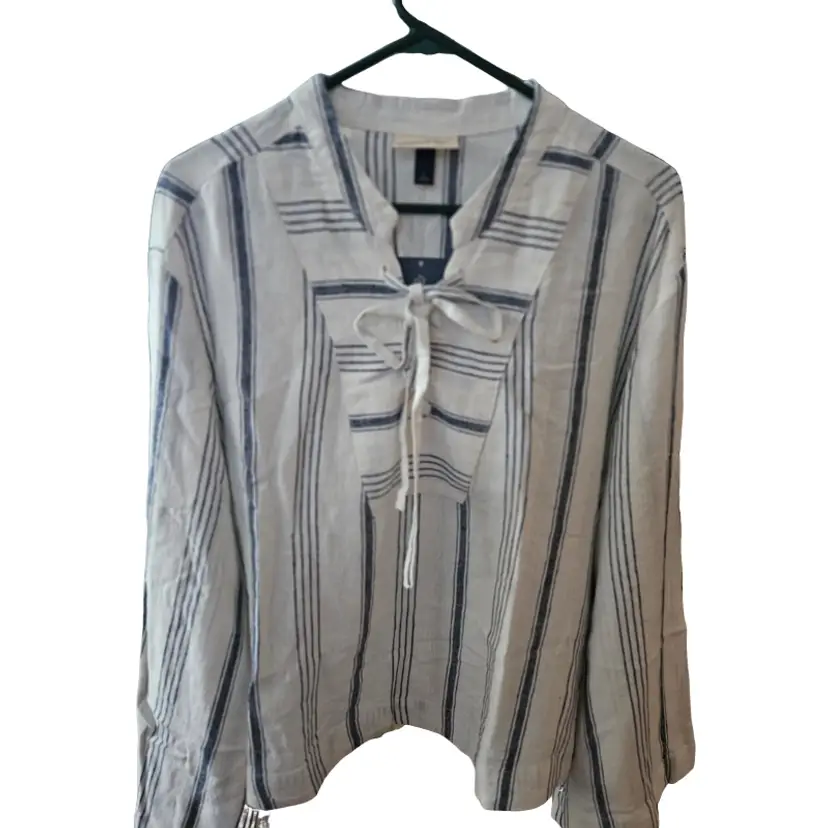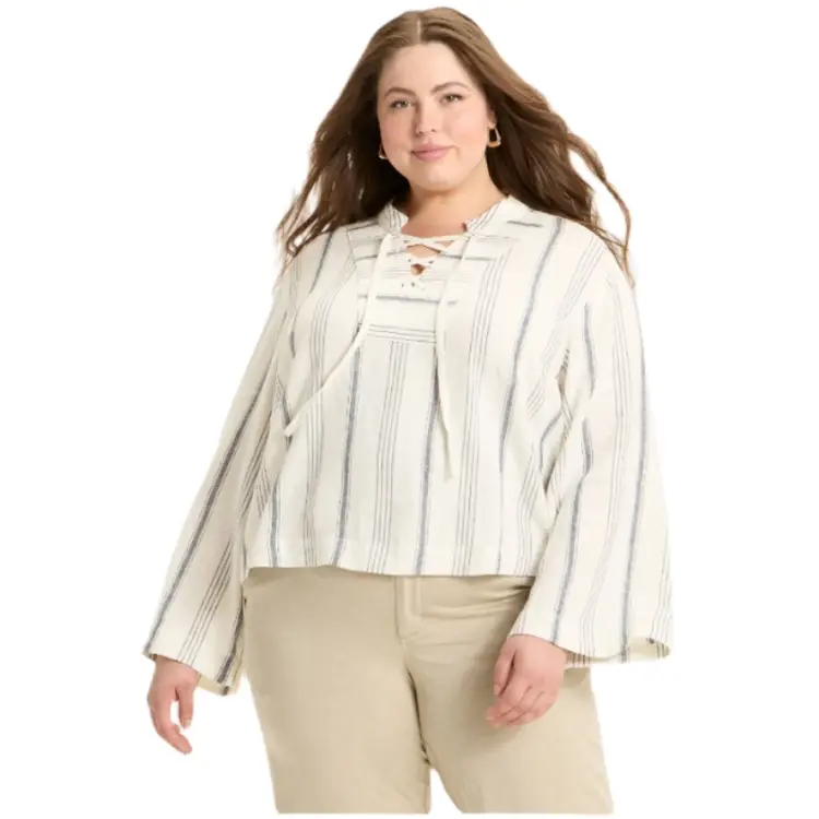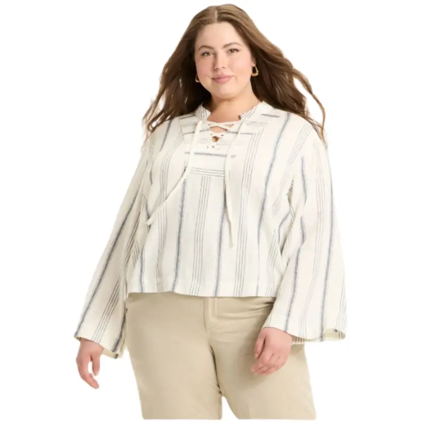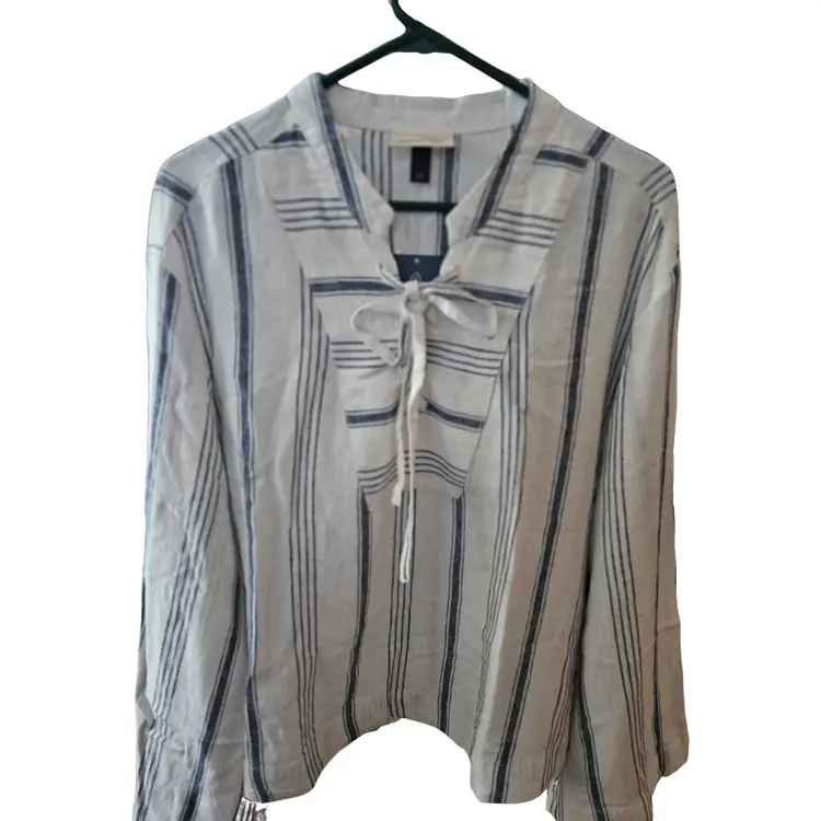 Universal Thread Bell Long Sleeve Popover Tie Front Striped Blouse Large