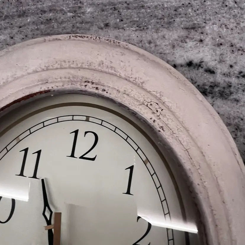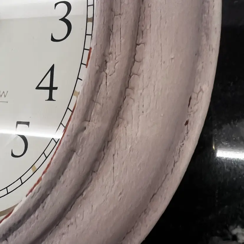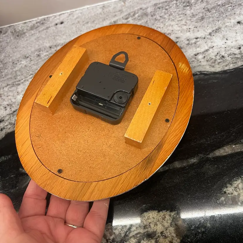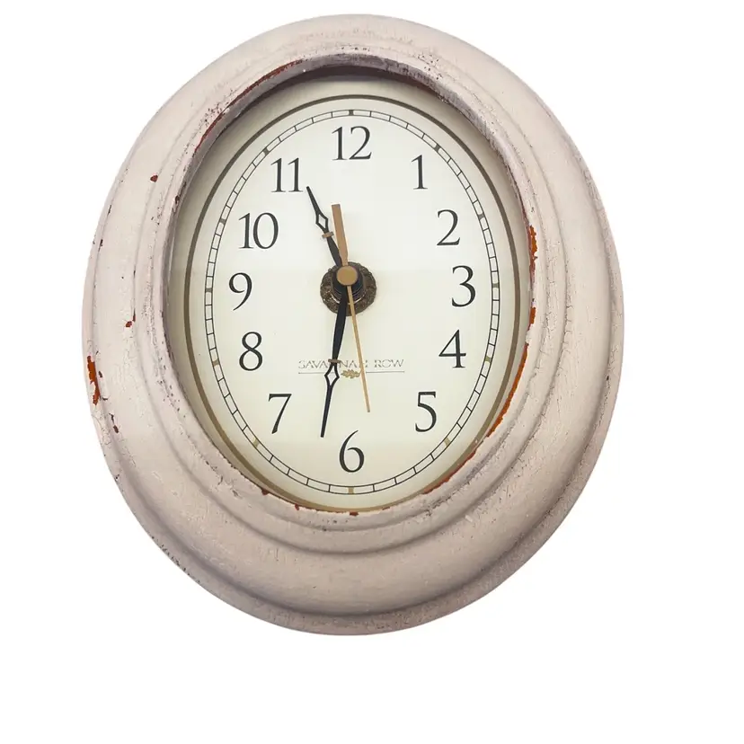 Up cycle by me approximately 7 x 8 1/2 The clock does work and his battery operated Batteries is not included Hand painted, distressed and sealed