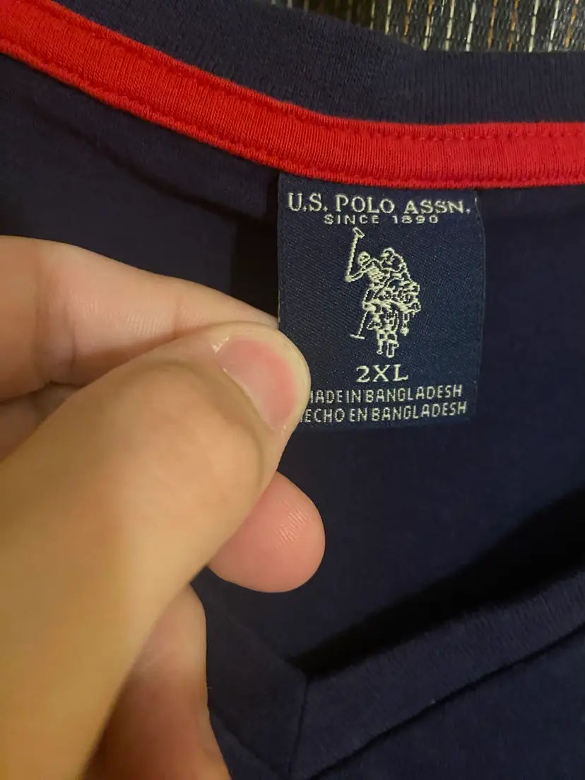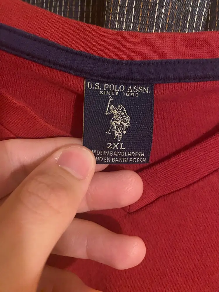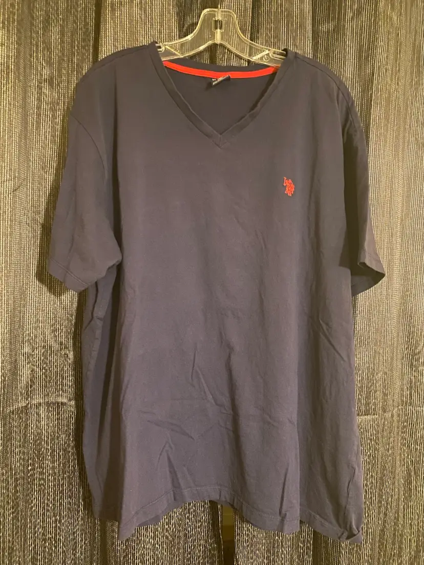 You are purchasing a pair of Men's Size 2XL Short Sleeve V-Neck T-Shirts by U.S. Polo Assn. This Listing includes one Red Shirt and one Navy Blue Shirt. These Shirts are in great condition with no holes or stains.
