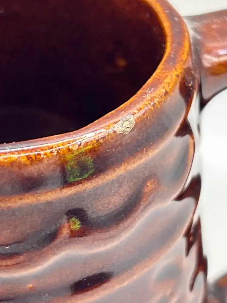 Has a small rough spot/glaze chip on the rim.