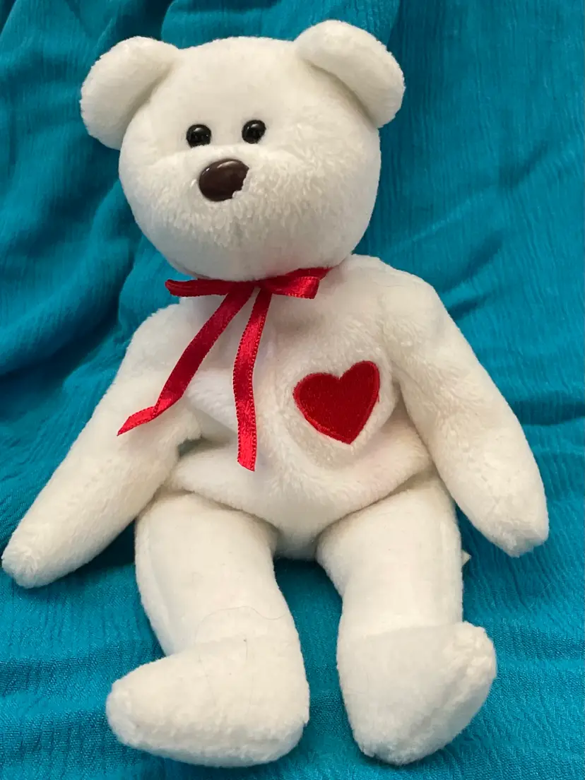 Offering a genuine 1993 1st Generation Valentino Beanie Baby, identifiable by its black and white tush tag, despite the missing hang tag. This is the true original release, featuring the definitive single white tush tag – the hallmark of the earliest 1993 production.