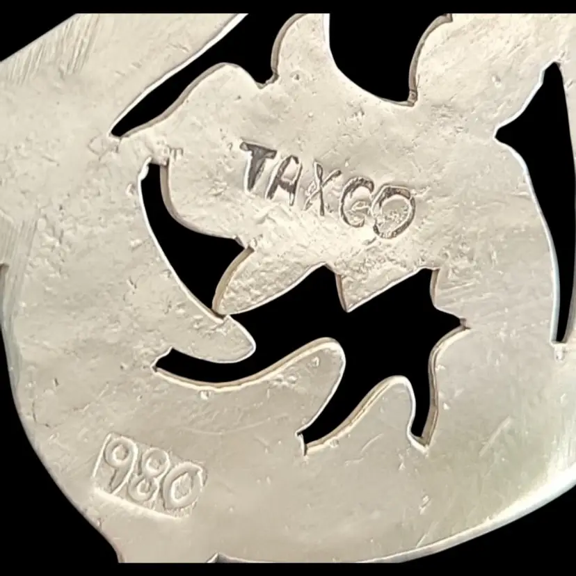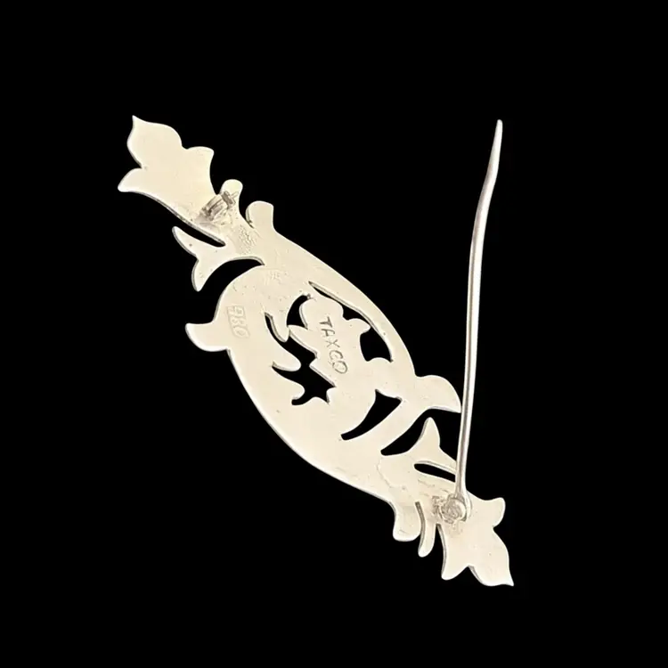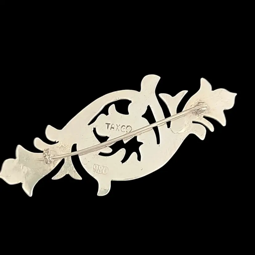 In excellent condition stamped TAXCO 980 Silver Cut-out Pin with original working clasp and Pin. Rare find in this condition! 980 Silver content is higher than sterling.