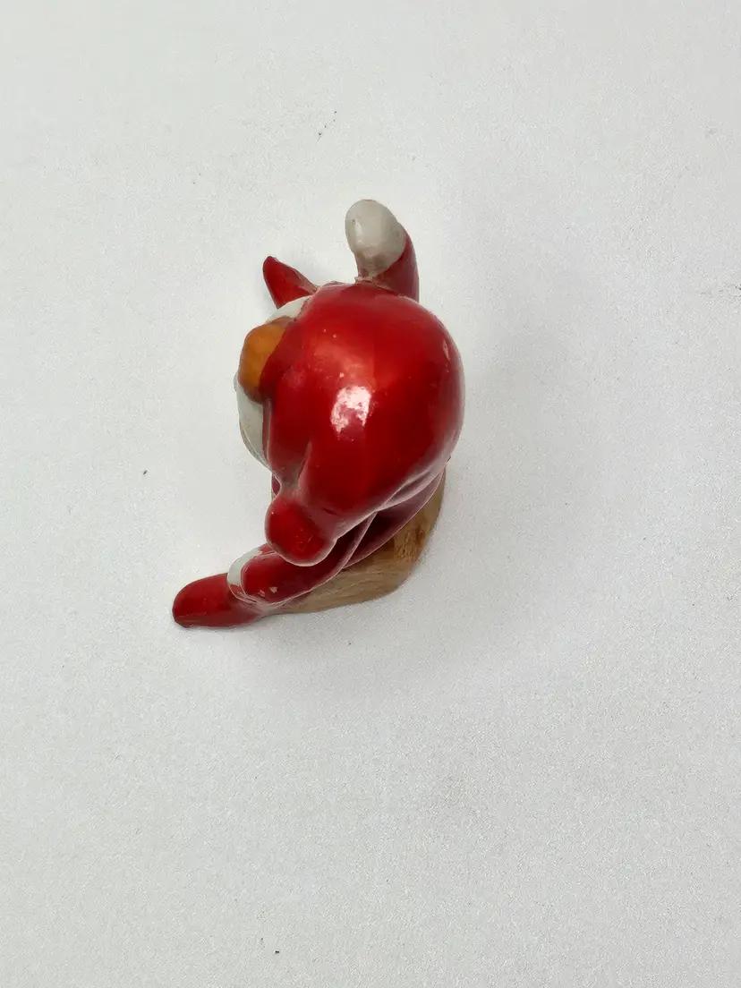 Capture the enchanting spirit of Christmas past with this charming vintage ELF figurine, a delightful nod to mid-20th-century holiday decor. Hand-painted and glossy, this ceramic and porcelain piece showcases a whimsical elf perched playfully on a tree log, bringing a touch of fantasy and seasonal cheer to any space.
