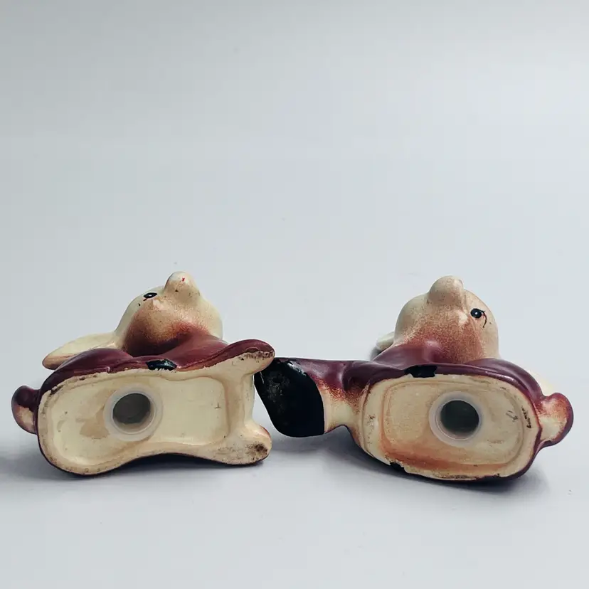 Adorable shakers and certainly can be used as decorative figurines, especially at Christmas. Condition: We find no chips or cracks in the ceramic but there is some glaze chips. NOTE: Vintage items come to me used and loved. Perfection is not guaranteed. Pictures are part of desciption. Please use zoom to examine before purchase.