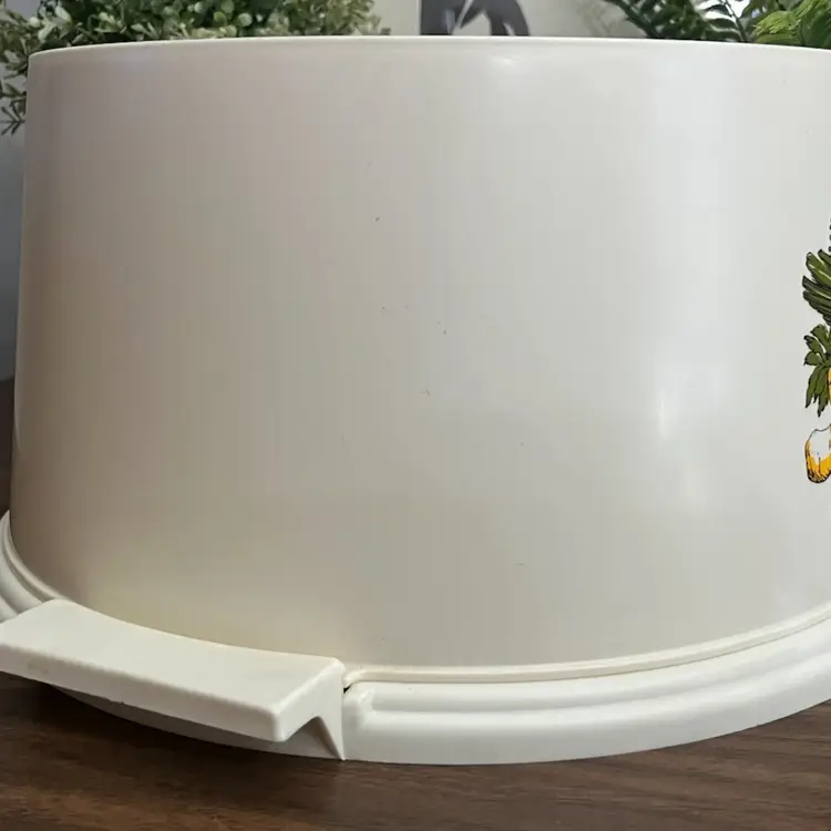 In decent preowned vintage condition. Cake cover has some scuffs, scratches, and yellowing to the plastic as pictured. Measures about 6.5” tall and 12” in diameter. Message me with any questions.