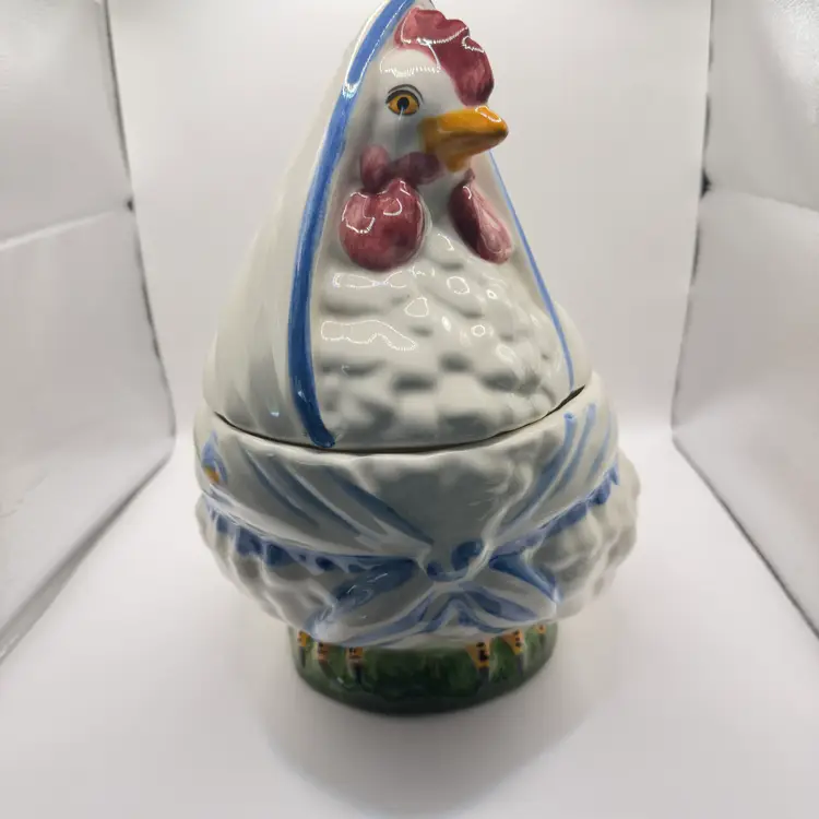 Vintage hen soup gravy tureen from the 1970’s. Missing a soup. No cracks, one repaired chip (see pics). Measures 13x11x13. Weighs 8lbs with shipping materials.