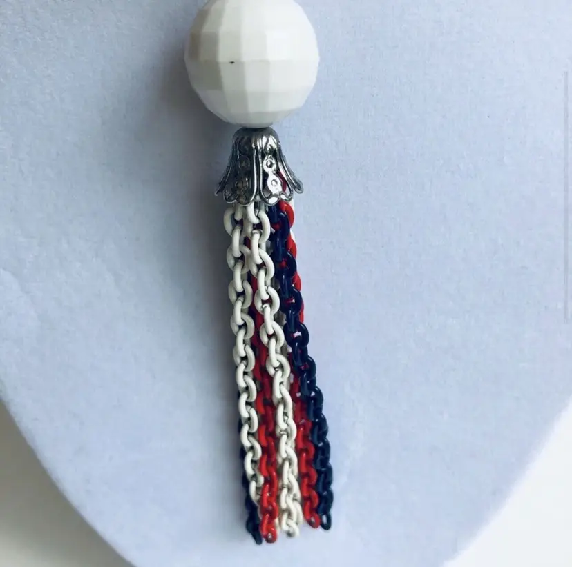 Brand: Unbranded Type: Necklace Closure: Spring Ring Era: 1970s Color: Red Pendant/Locket Type: Tassel Style: Pendant Main Stone Color: White Year Manufactured: 1970-1979 Necklace Length: 22 in Jewelry Department: Fashion Vintage: Yes