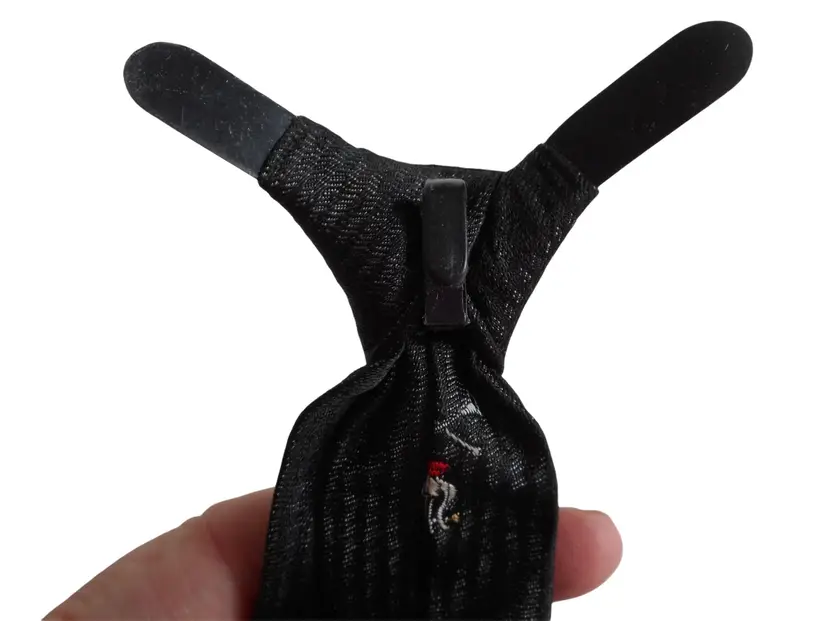 Vintage tie from an Estate -1970s Striped Harp Trumpets Black grey clip on Tie necktie