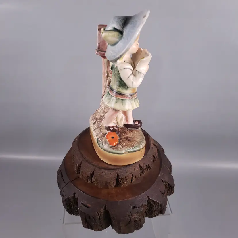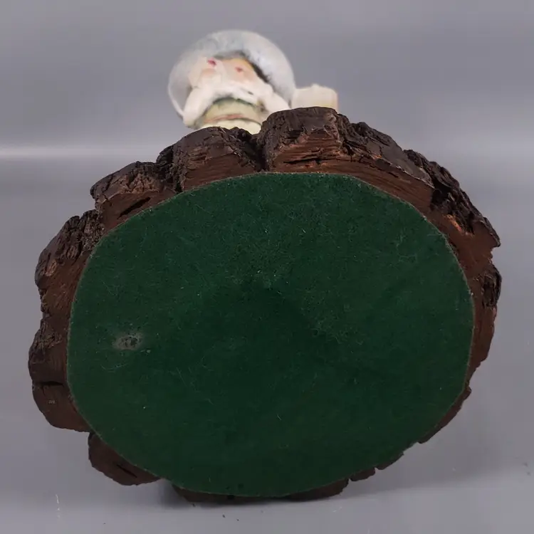 • Figurine has been adhered to a burl wood base with musical element in the base of the bottom piece of wood