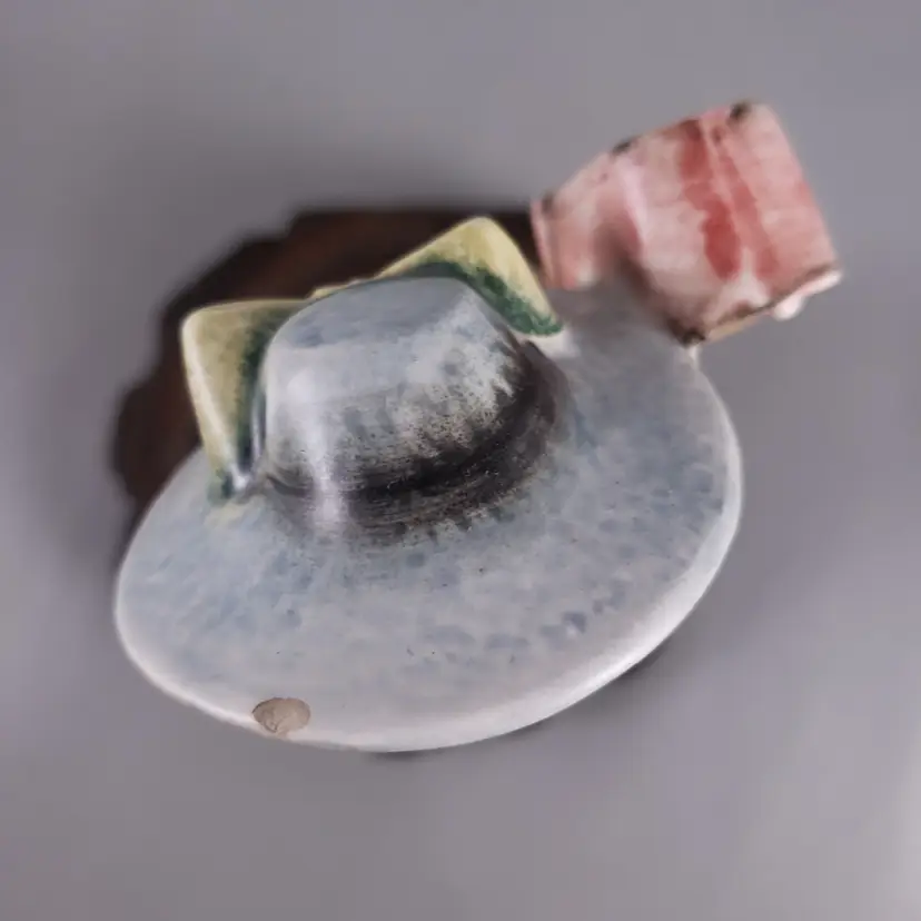 ** Chip is noted on the top of the girl's hat, as shown in photos