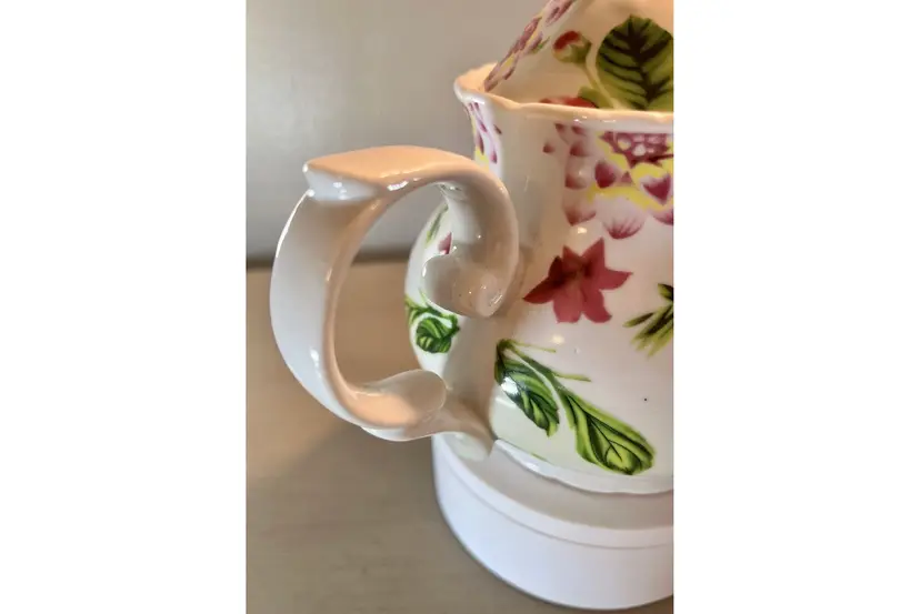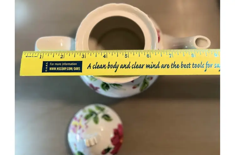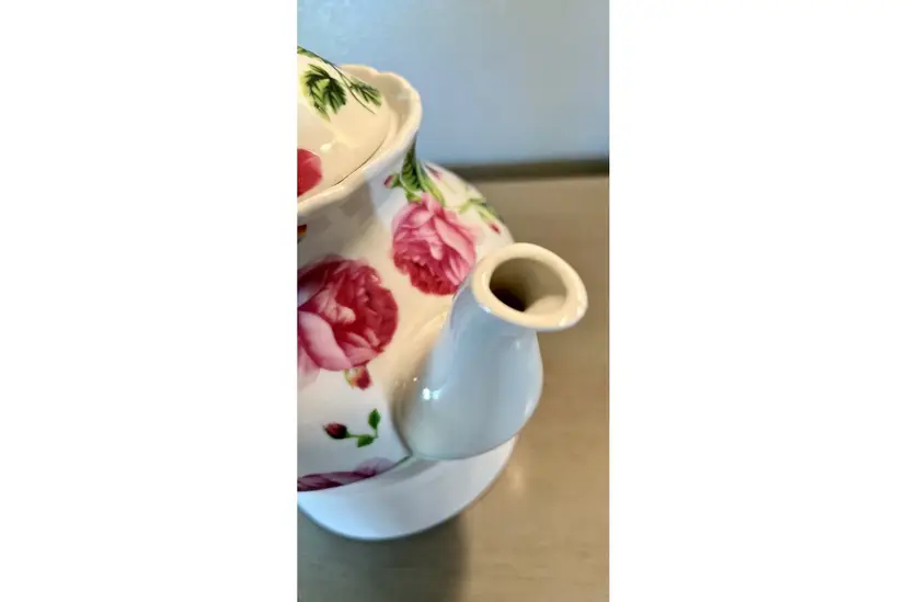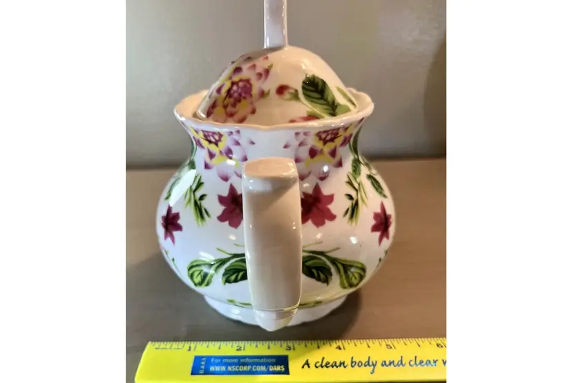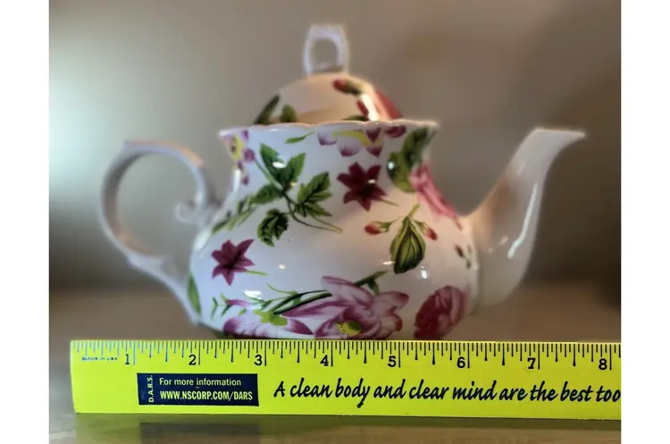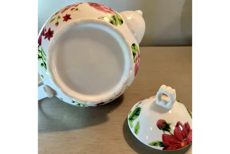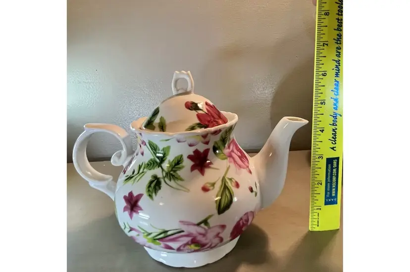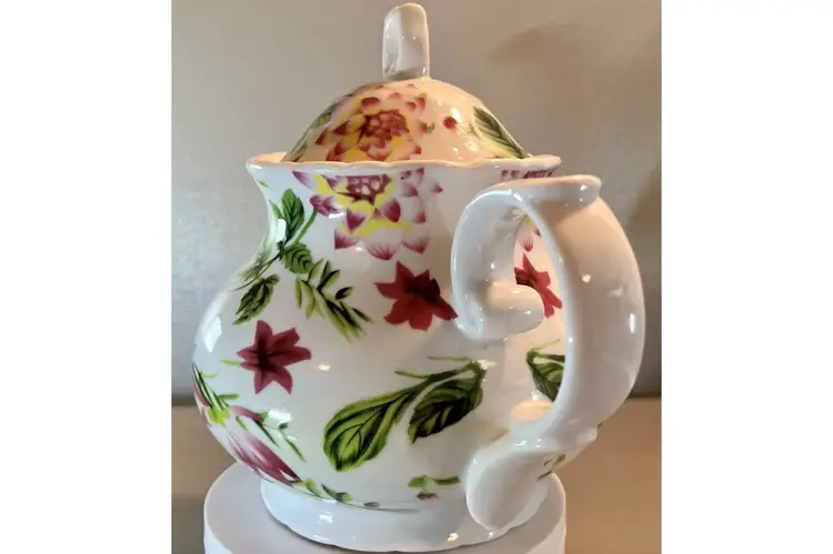 This vintage teapot coffee pot from Baum Bros Formalities features a beautiful floral design with roses. The round shape and medium size make it perfect for all occasions. The tea pot has a glossy finish, handles, and comes with a lid. It is made of ceramic and porcelain, and can hold up to 12 oz of liquid. The tea pot was manufactured in the 1980s in China and weighs 1 lb 5 oz. It is a great addition to any collection and would make a lovely gift. The item has been well cared for and is in excellent condition. Nice no cracks or chips. Measurements (see pics).