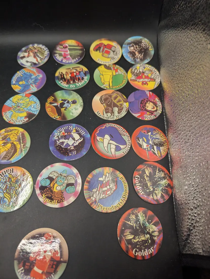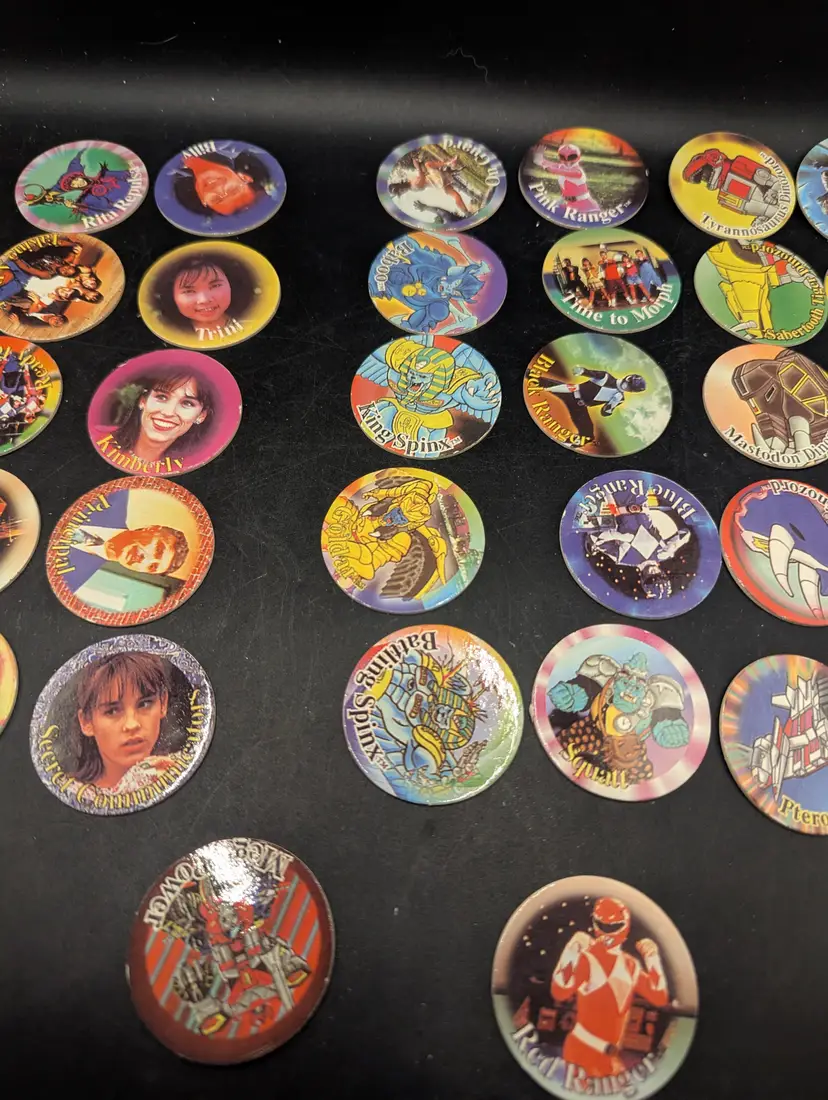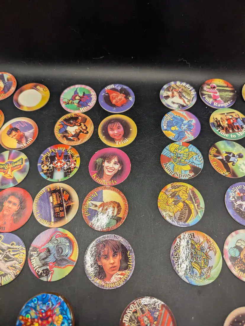 This is a fantastic Vintage 1990's Lot of 43/50 Mighty Morphin Power Rangers Pog Set With Plastic Enemy Pog. Please see all pictures for condition and details.