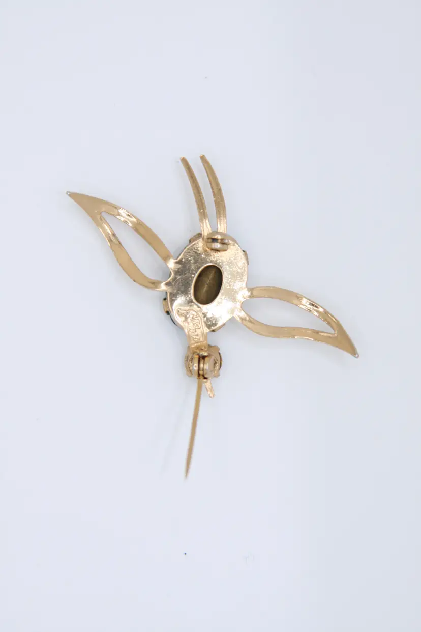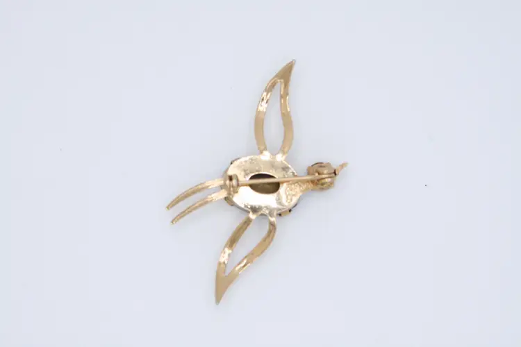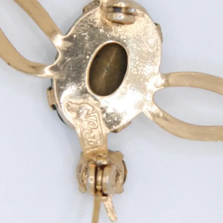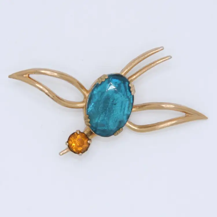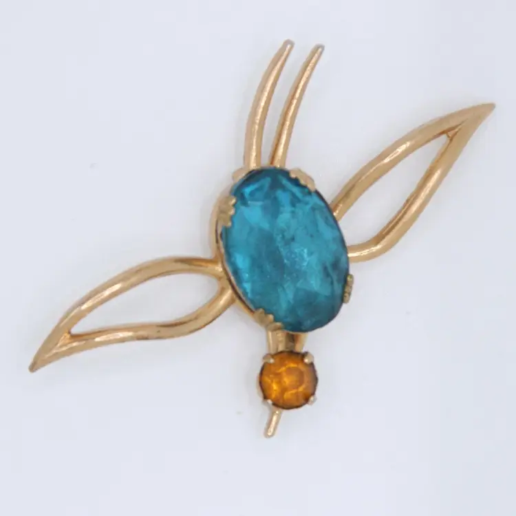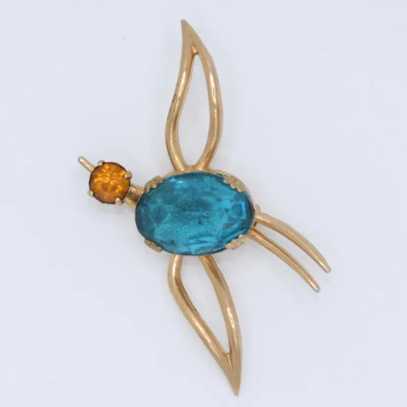 This Coro bird brooch is in excellent condition with no chips, cracks or repairs! The gold shows very little signs of wear and the blue and orange stones are in great shape with bright color! This Coro bird brooch is about 1-1/2 inches long and measures 2-1/4 inches from wing tip to wing tip. It is marked with the Coro Pegasus logo.