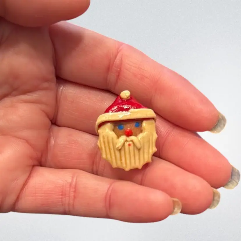 Vintage 60’s Adorable Handmade Clay Santa Brooch 1”