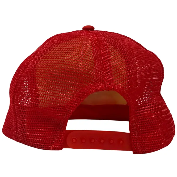 Small seam tear on the brim, pictures provided. The Vintage 80’s Ta-Ta Inspector Trucker Style Snapback by Sportscap is a stylish and humorous addition to any wardrobe. Made from a blend of polyester, foam, and cotton, this red and white snapback features a solid pattern with a unique 80’s theme. The adjustable features make it suitable for a variety of occasions, from casual wear to workwear, and the vintage style adds a touch of nostalgia to your look. Perfect for travel, parties, or everyday wear, this unisex adult hat is a must-have for those looking to make a statement with their accessories.