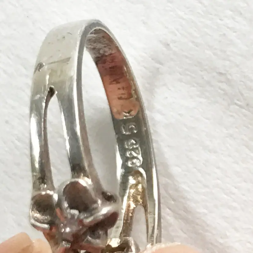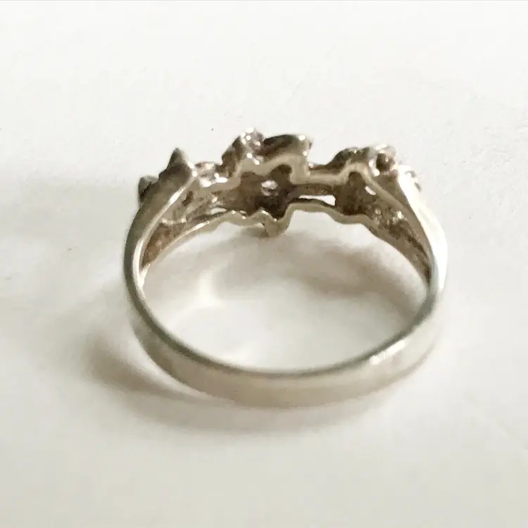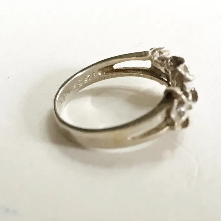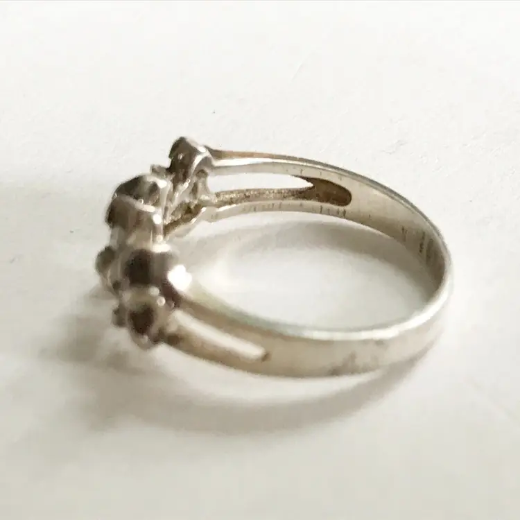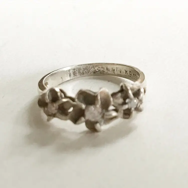 Vintage 925 Sterling Silver Triple Plumeria Flower Floral Rhinestone Ring
