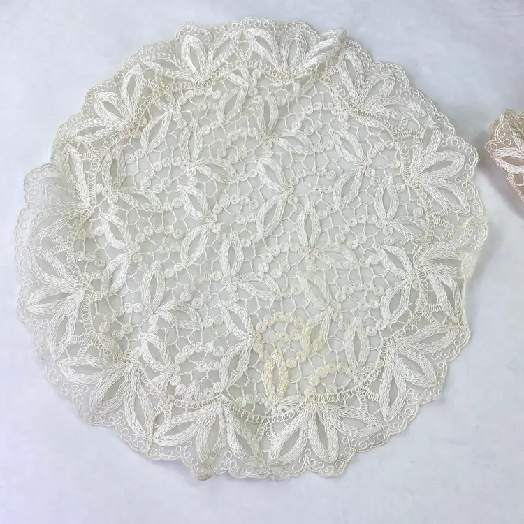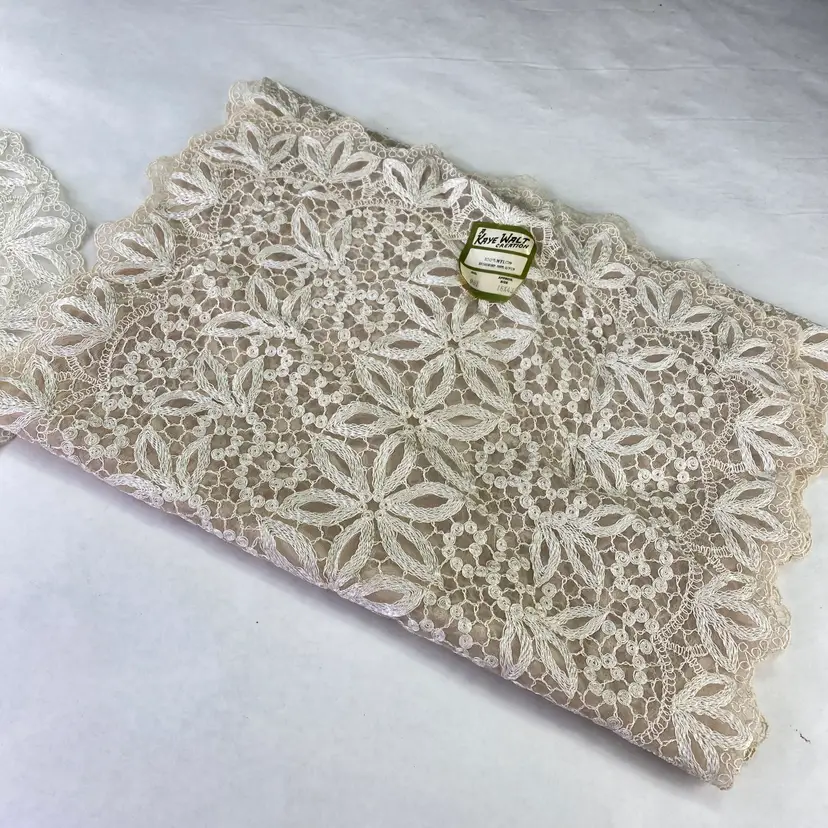 Vintage A Kaye Walt Creation Embroidered Doily and Runner Lace Set of 2