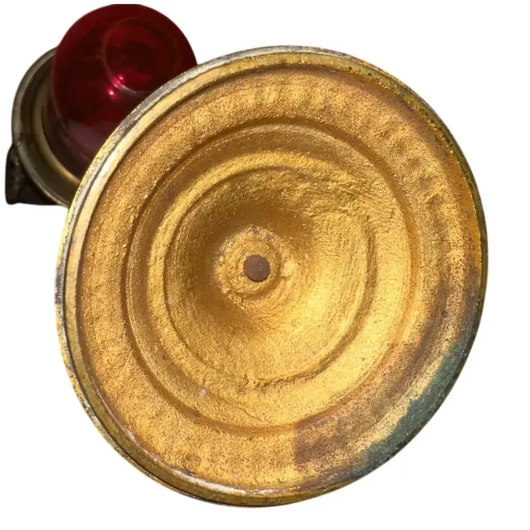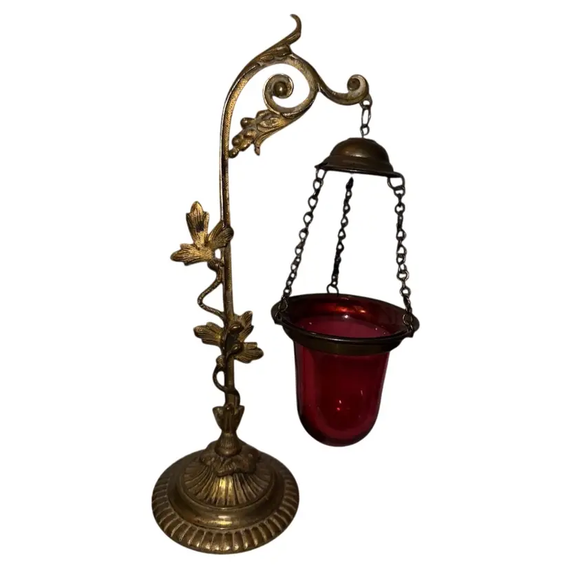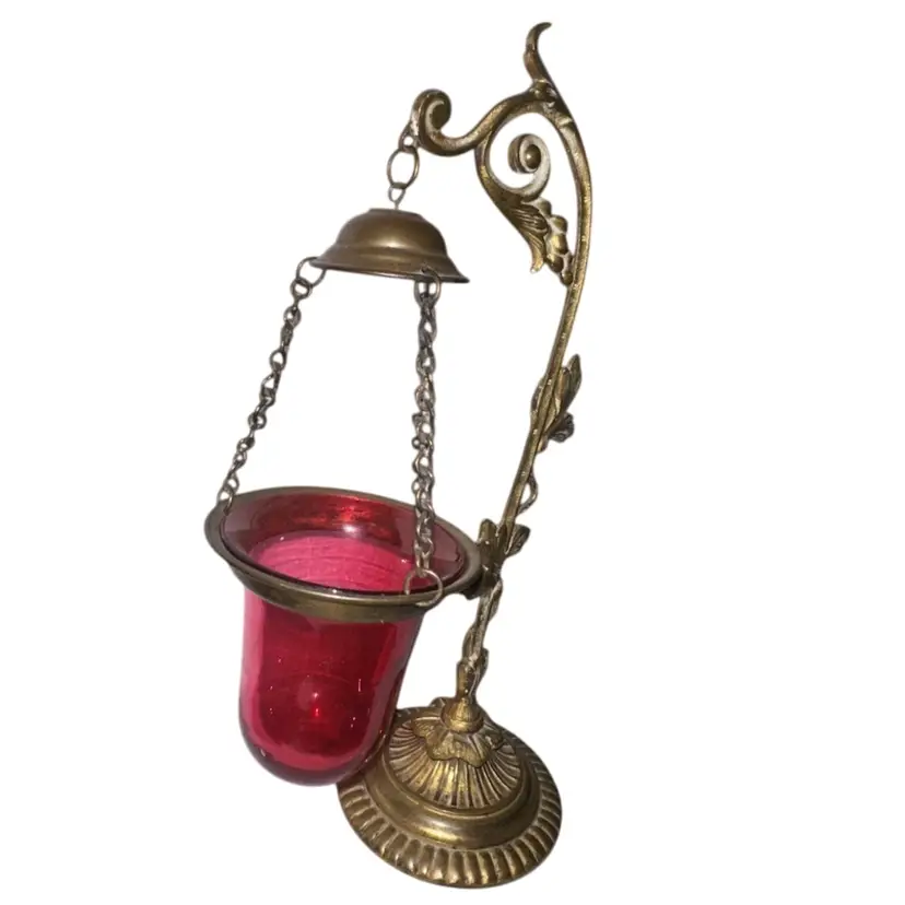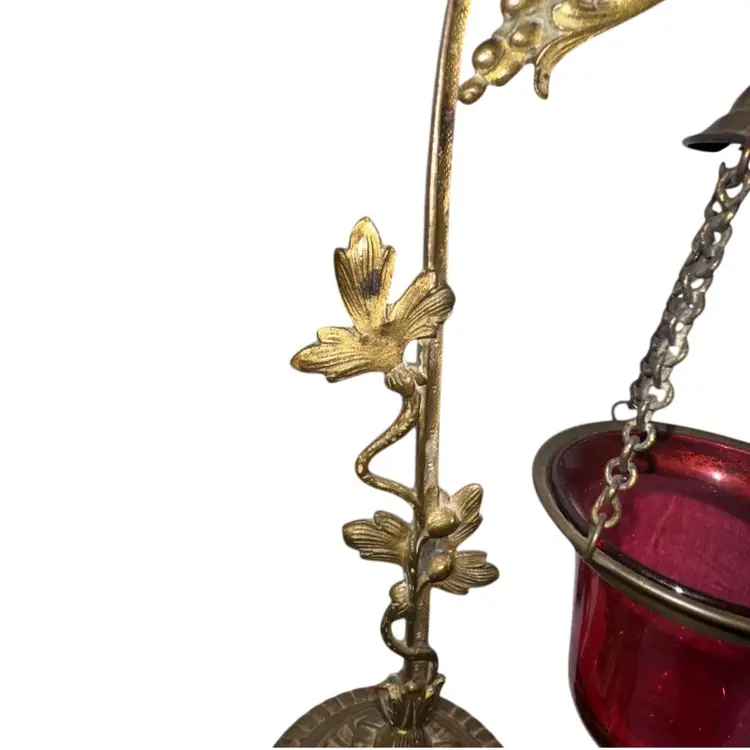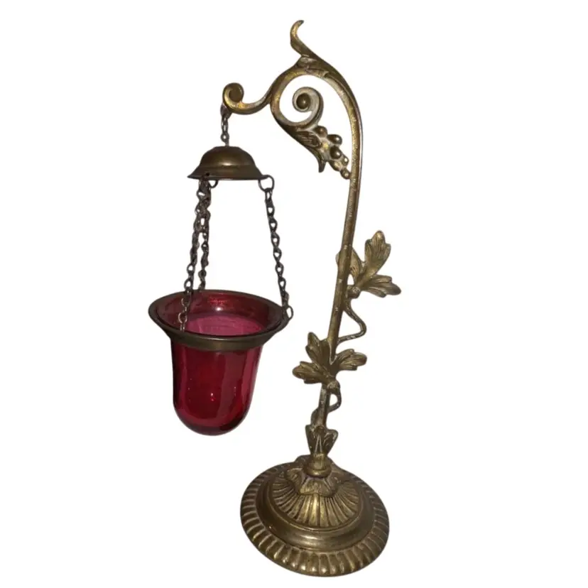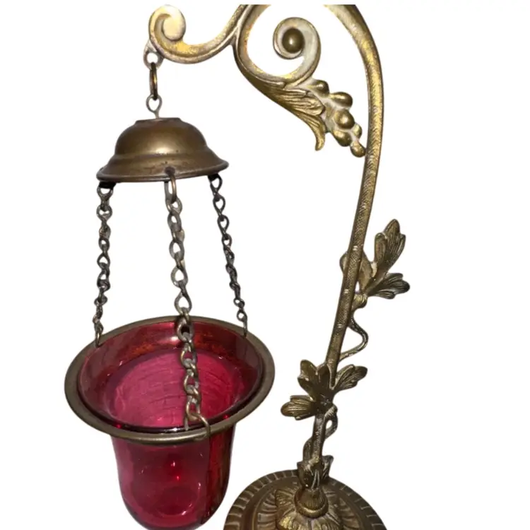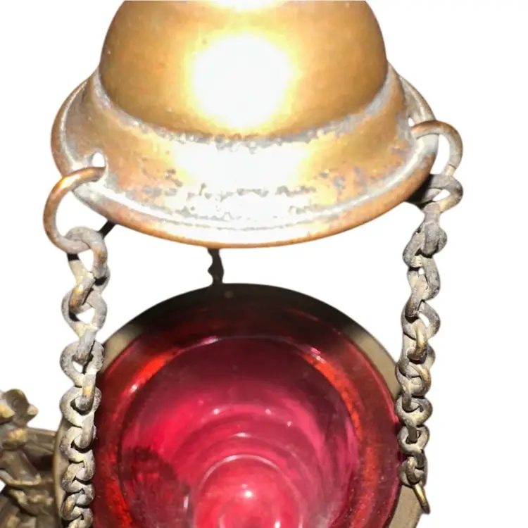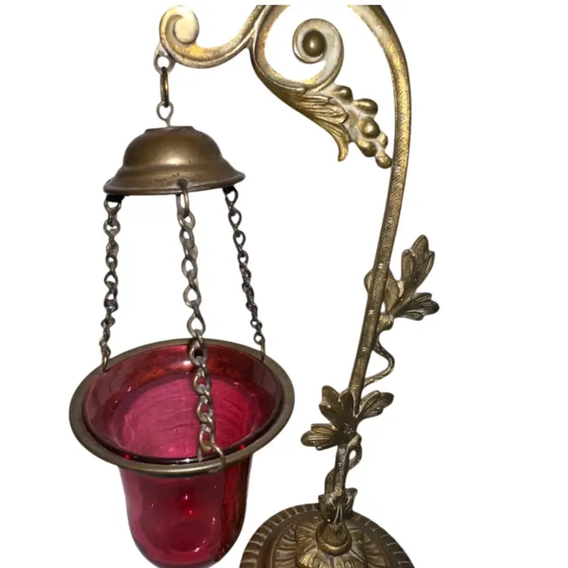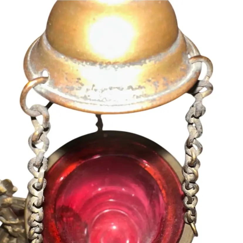 Vintage Altar Night Light, Sanctuary, Vigil Lamp Brass & Red Glass 9.5” tall x 5 1/5” x 3” Little patina