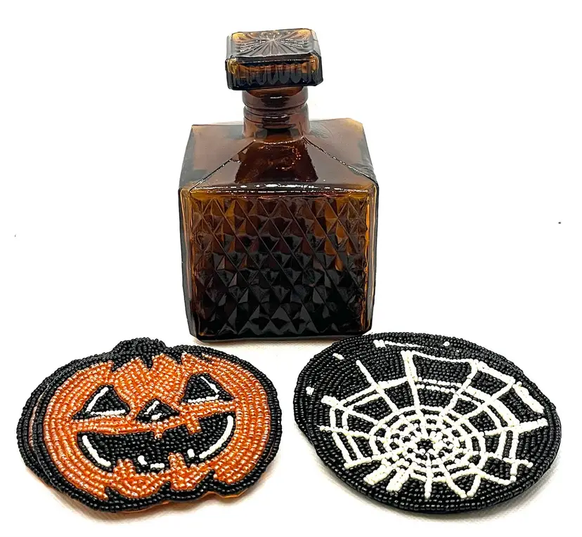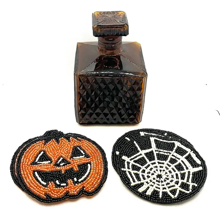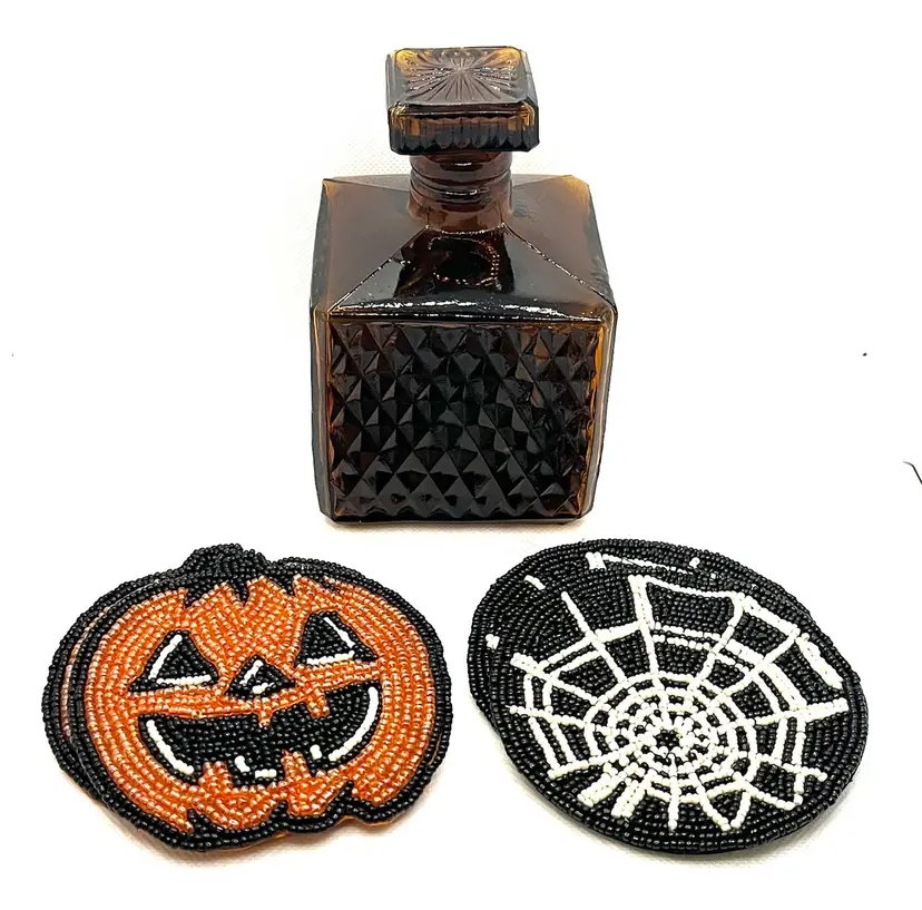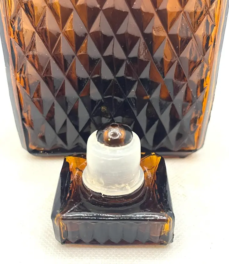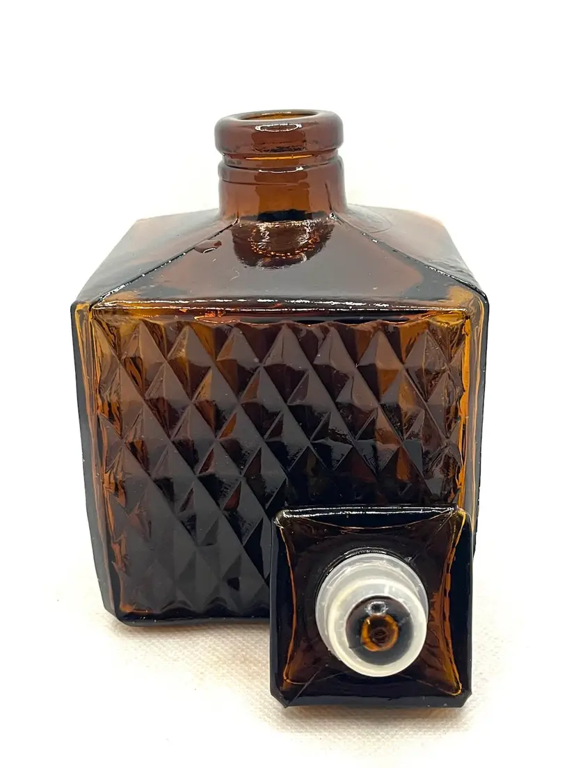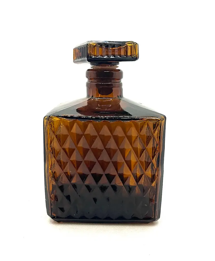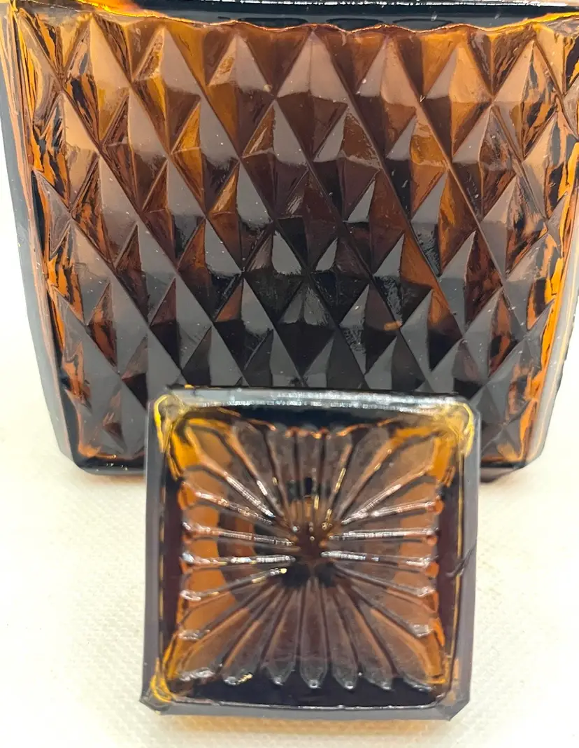 Vintage Amber Glass Square Diamond Point Decanter Bottle W/ Stopper MCM Barware. Lovely Fall Halloween Decor. Made in Taiwan. Minimal surface wear or scratches. No chips or cracks.