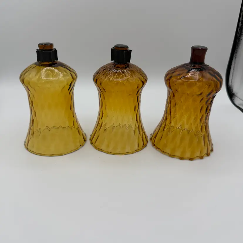 Vintage Amber Glass Peg Votive Holders - Sconce Peg Votive Holders - Set of 3 - Diamond point Design Pattern. Textured Glass Creates a Unique Glow When a Candle Is lit Inside. MCM 5" H X 3 1/4" W. No Chips or Cracks.