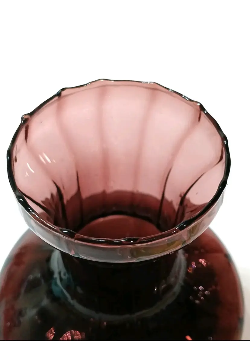 Vintage Amethyst Ribbed Glass Vase Aprox 5¼" x 5"