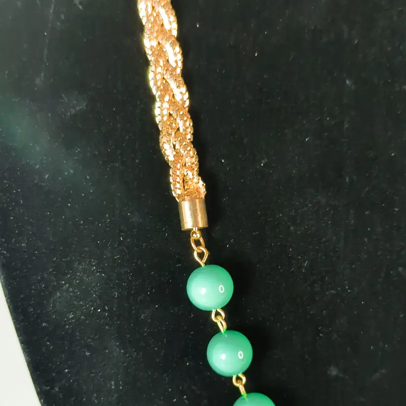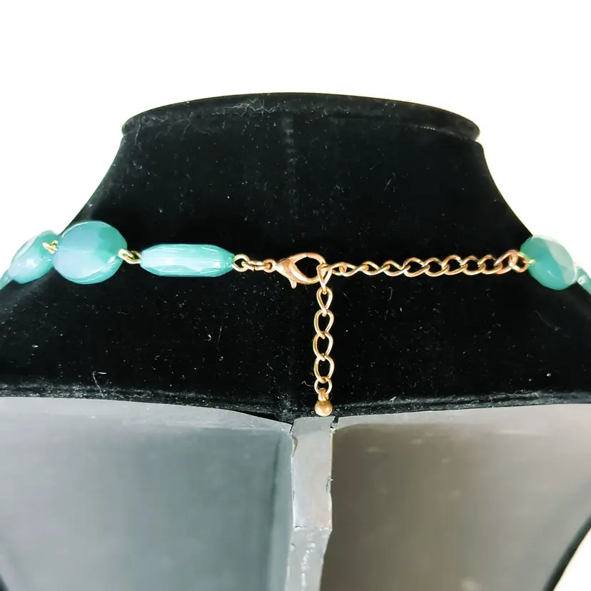 Vintage Aqua Blue Beaded Long Necklace With Gold-Tone Chain & Clasp 36 Inches. This elegant necklace features vibrant blue beads complemented by a gold-tone chain and clasp, offering a sophisticated touch to any outfit. (FC03)