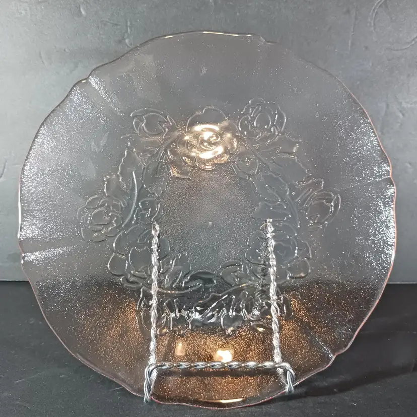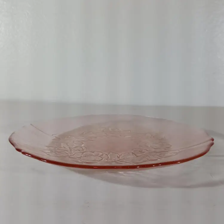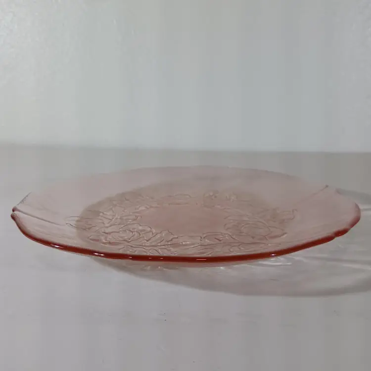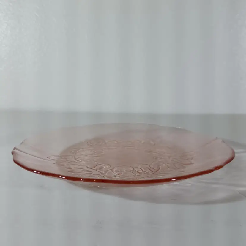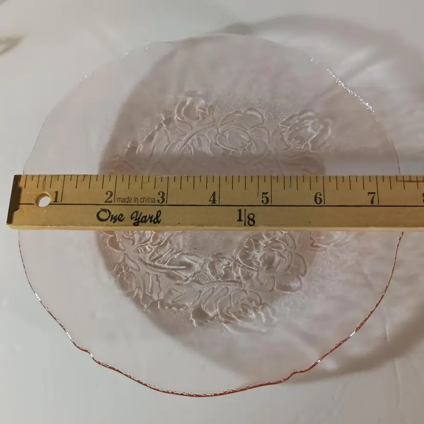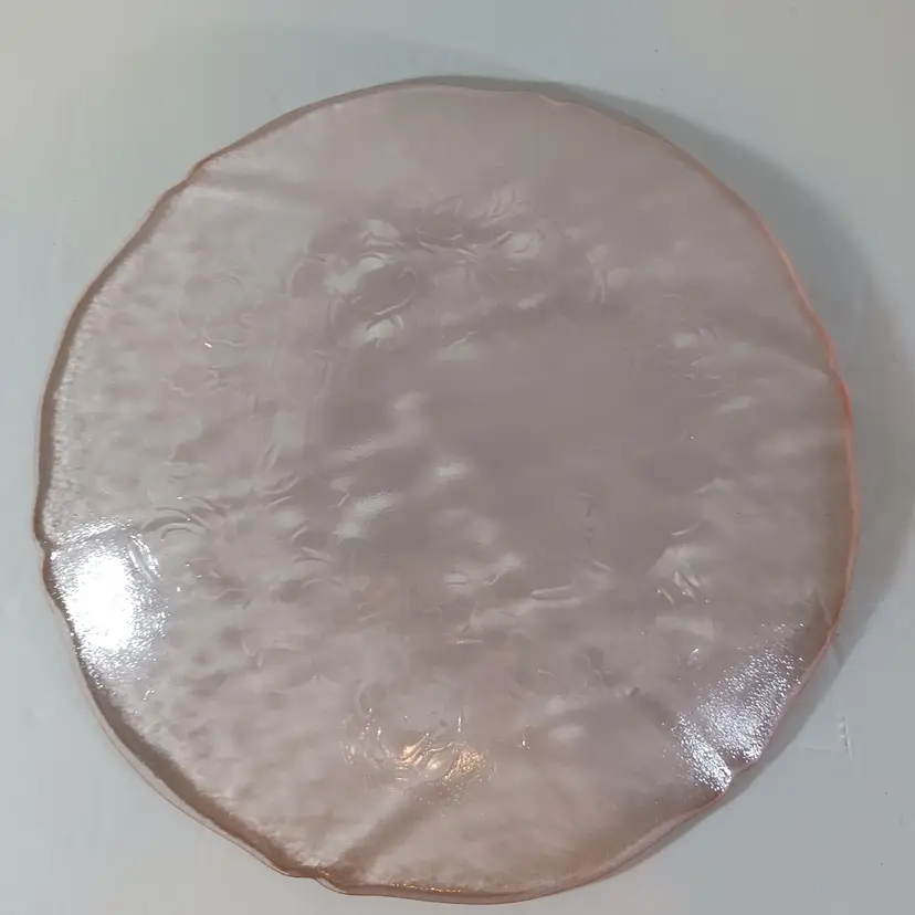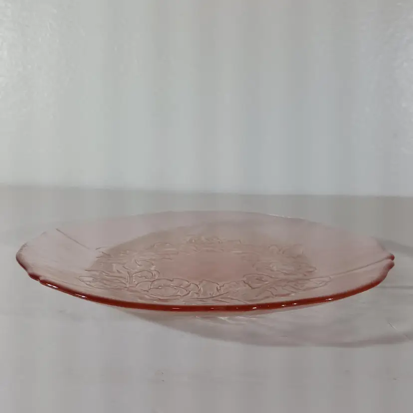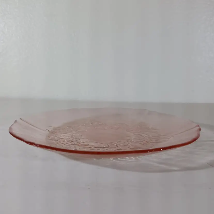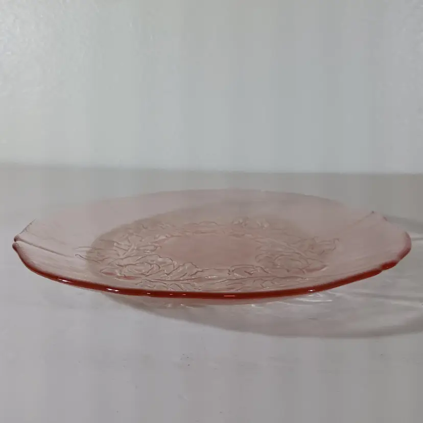 Vintage ARCOROC France ROSA PINK Glass Salad Plate ROSES 7 1/2"