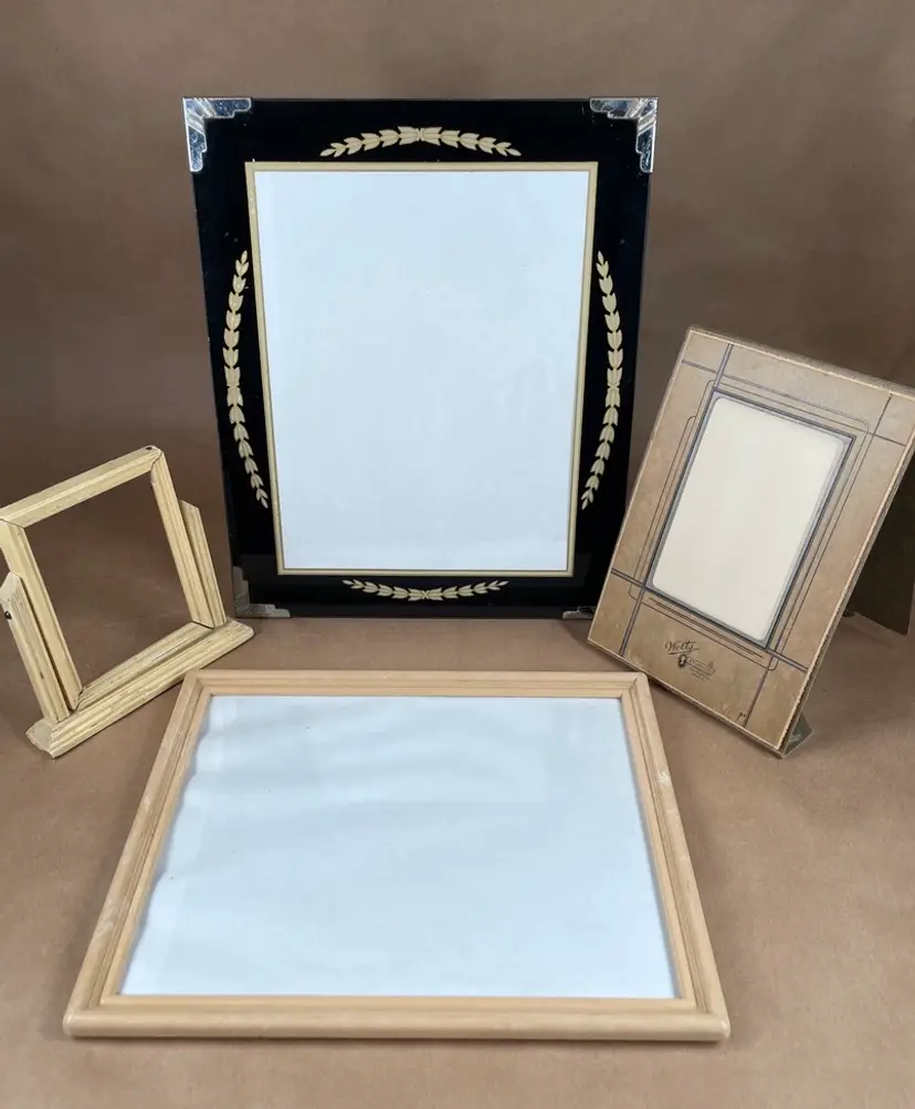 See photos for condition and measurements. Measurements vary per frame. The 7" x 5" Art Deco frame is reverse painted and does NOT have a back stand. The small wooden swivel frame does NOT have glass and is NOT sturdy. The 9"x11" beige frame is plastic. Made in the USA is on the back. Actual Photos, plus original promotional stills.