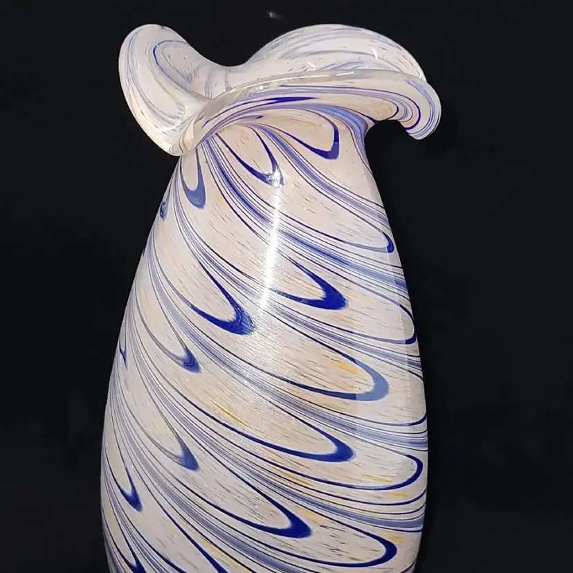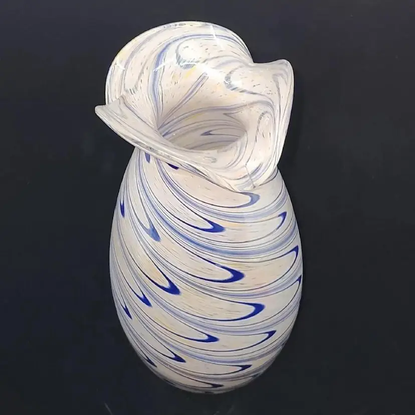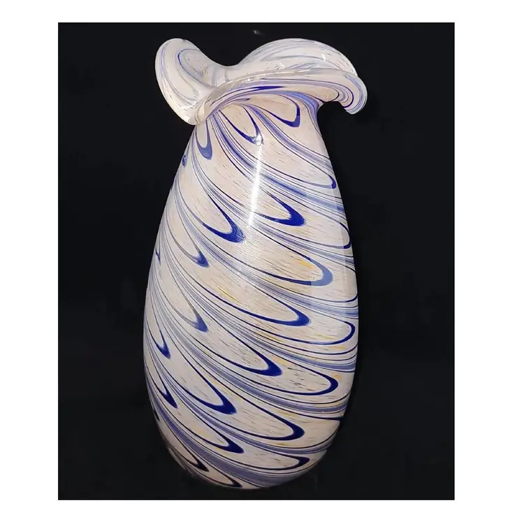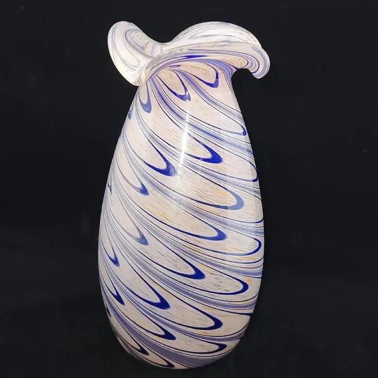 Vintage Art Glass Iridescent Purple-Blue Pulled Feathers Ruffle Top Vase