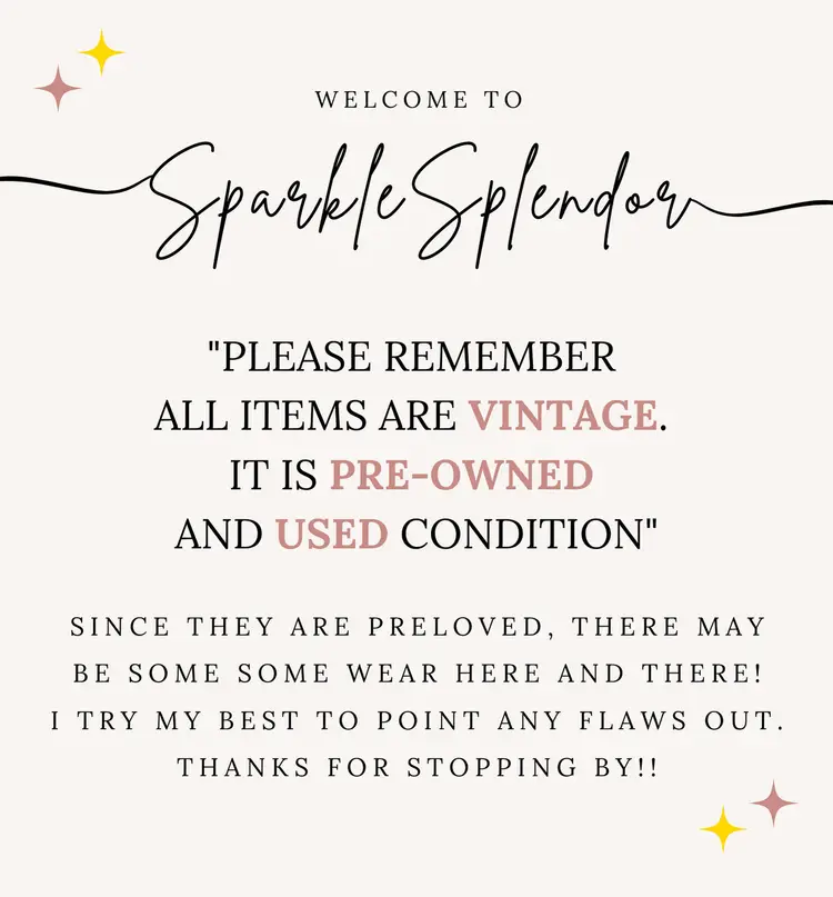 Please look at all the photos, as they are part of the description. I try my best to point out any flaws. Also please remember this is a preloved piece and may show signs of light wear, marks, scratches, etc. I will be posting a lot more jewelry, Keep checking back.