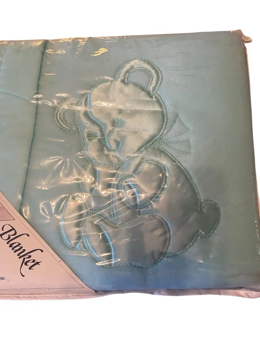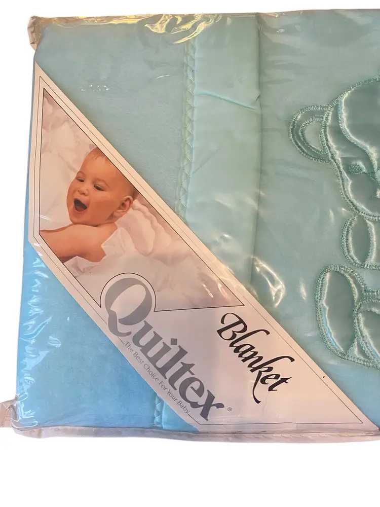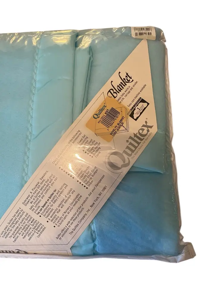 vintage baby blanket made by the brand Quiltex blue acrylic new in package