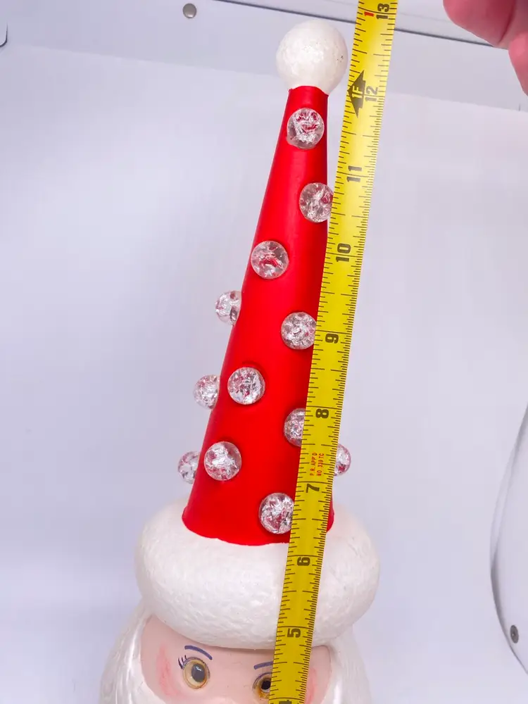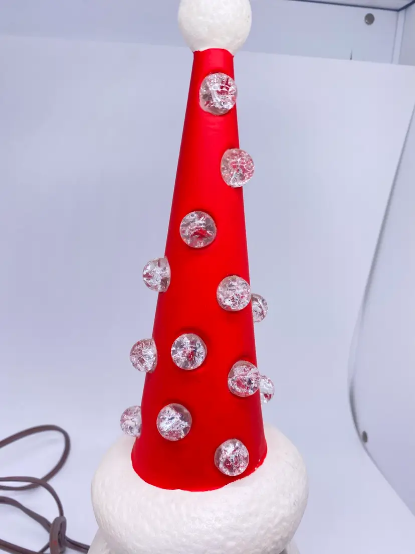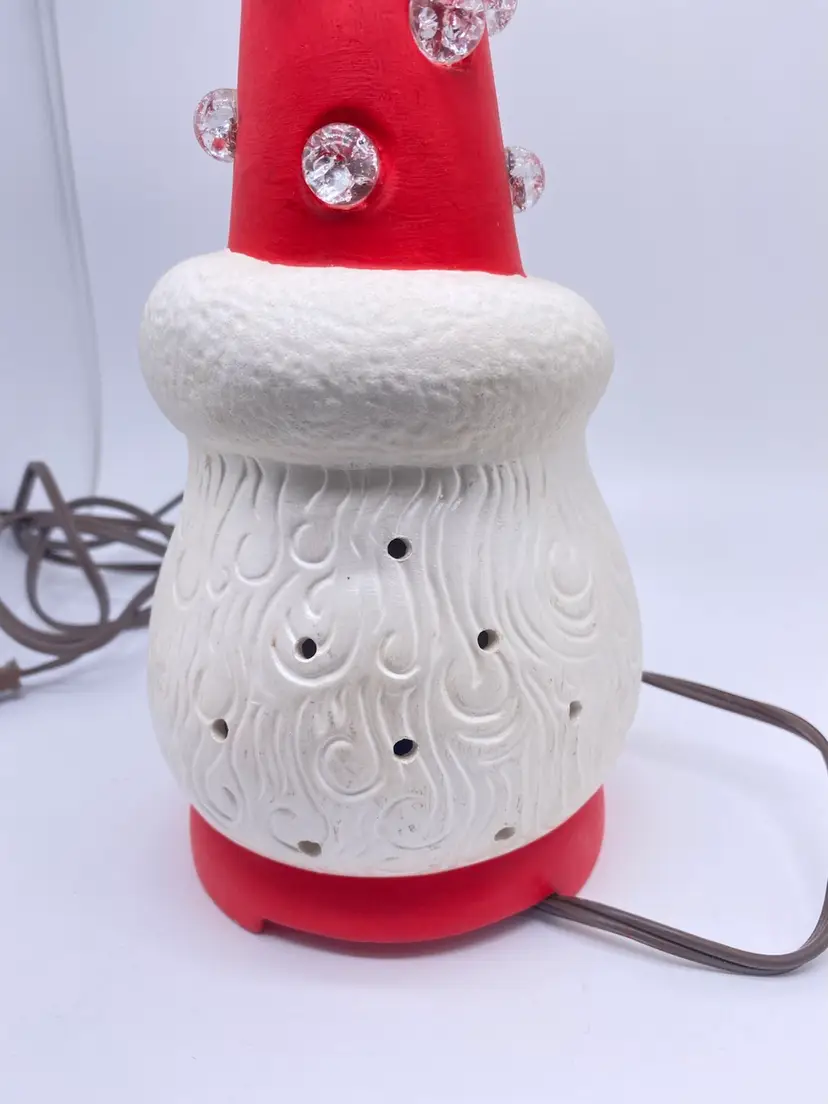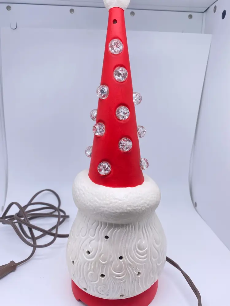 Christmas decor. When plugged in lights up. Missing an eye. Marked 1979 on bottom. Stands about 13” tall