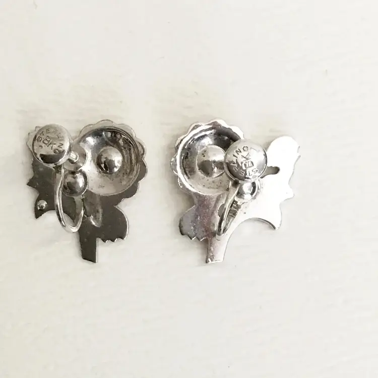 This is a set of screw back earrings and brooch. Only the earrings are signed "BK Sterling." I acid tested both but they did not test as sterling even though they are marked.