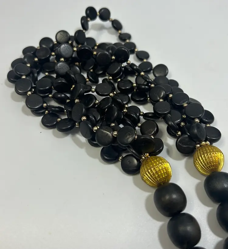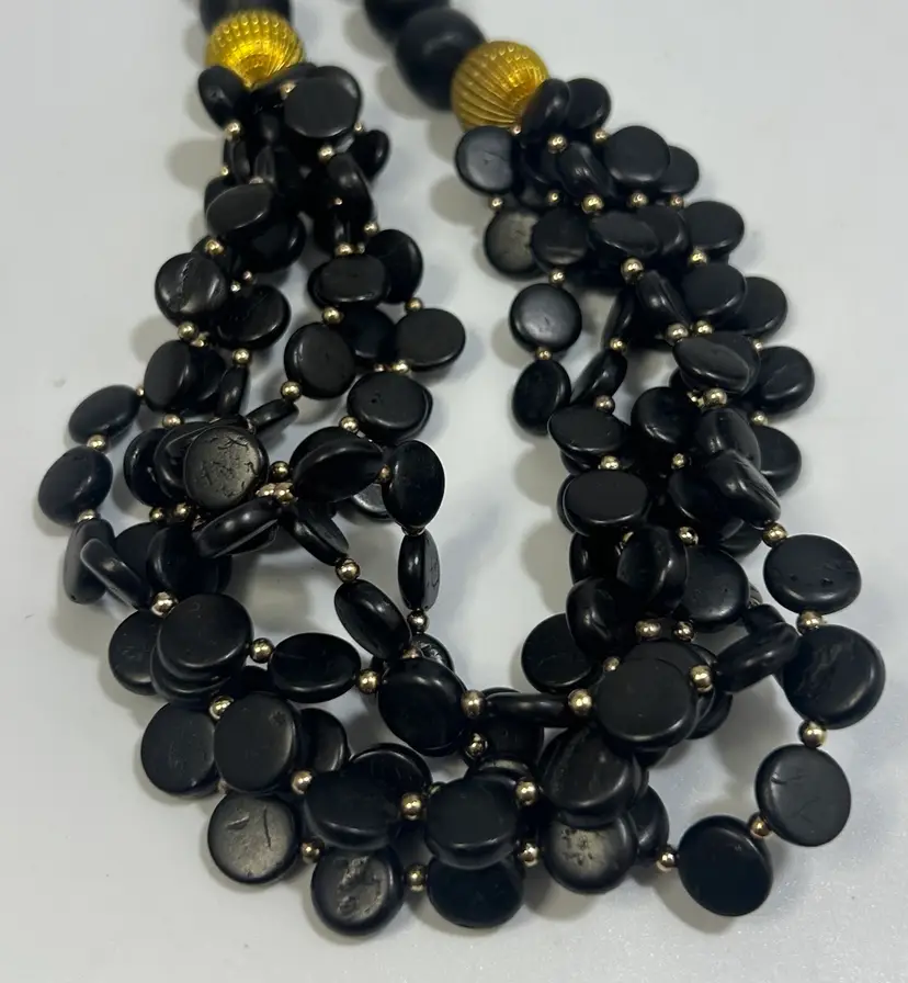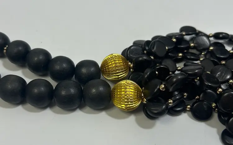 Common vintage wear, some black has faded of some beads. Metal in very good condition with minimal wear. Barrel clasp intact and functional.