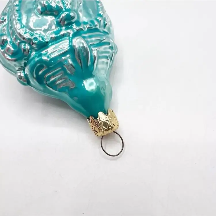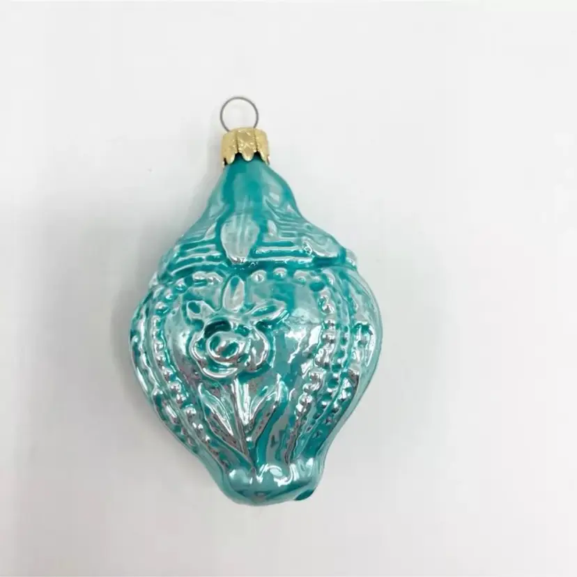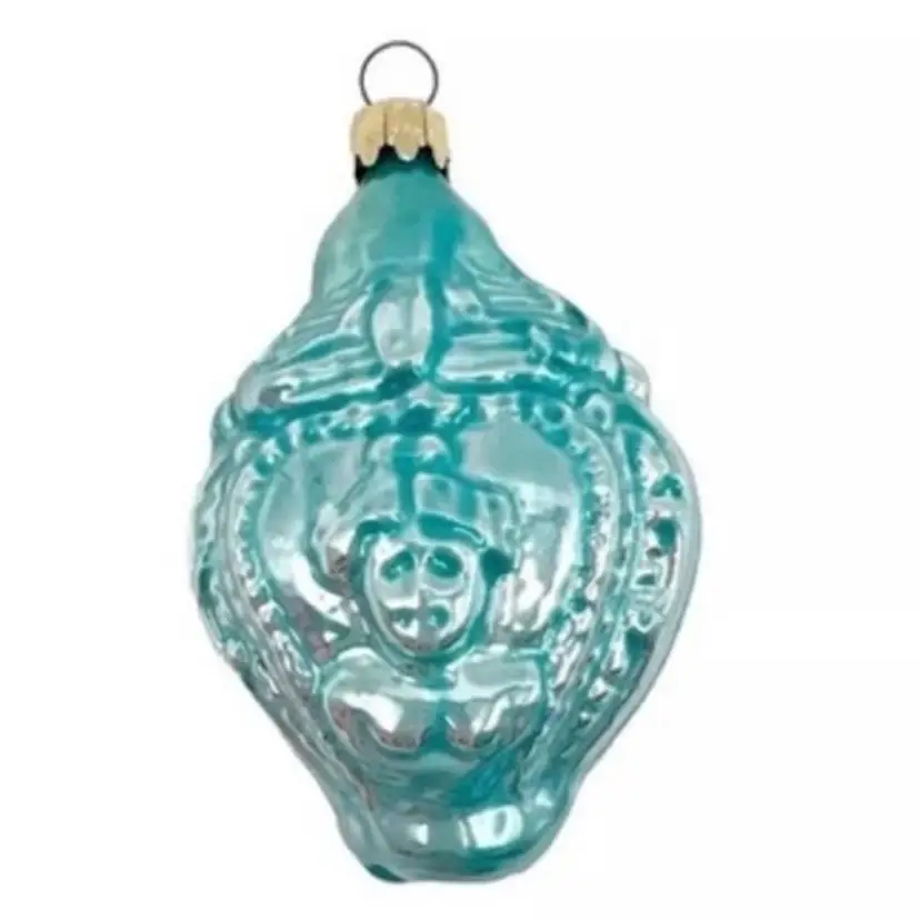Vintage Blown Glass Lady Bust Rose Embossed Drop Christmas Ornament West Germany