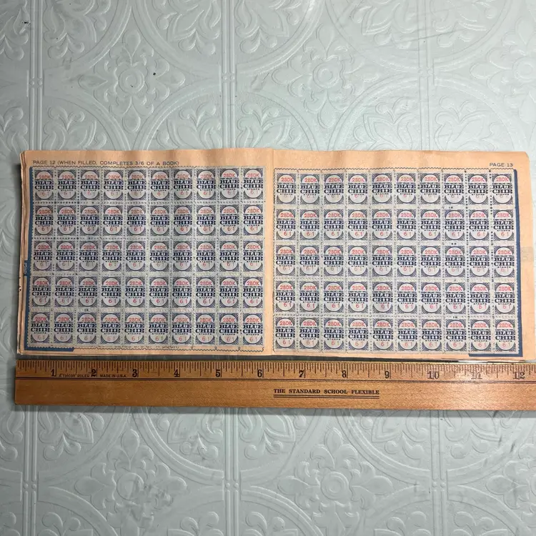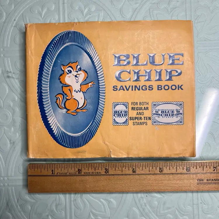 Blue Chip Savings Stamp book. 12 double-sided pages (with a book’s value of stamps) plus front and back cover. S