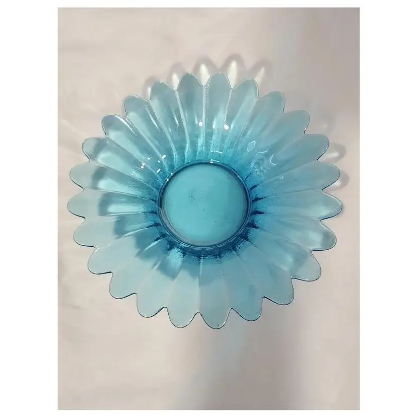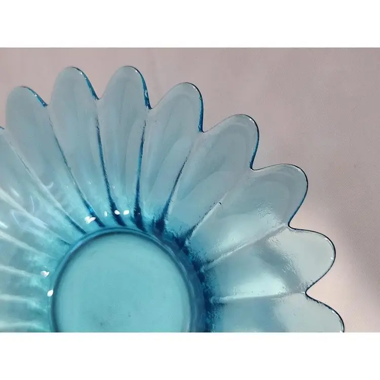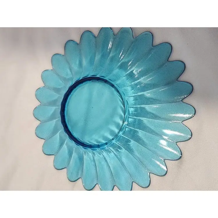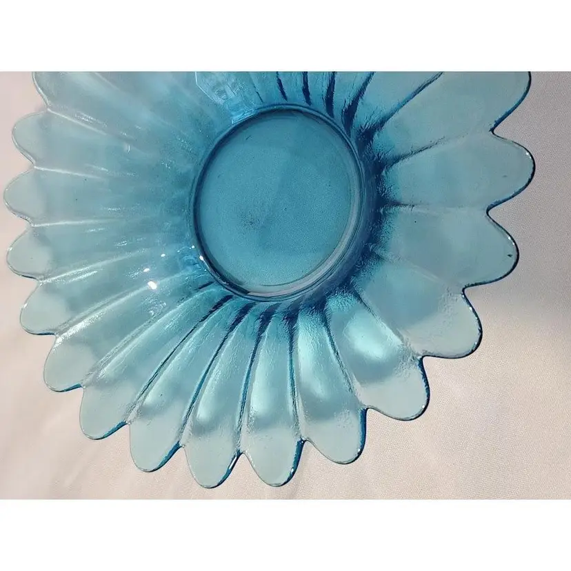 Brighten up your space with this stunning vintage blue glass bowl, designed in a charming daisy shape. Perfect for adding a pop of color to your decor or serving your favorite treats in style.