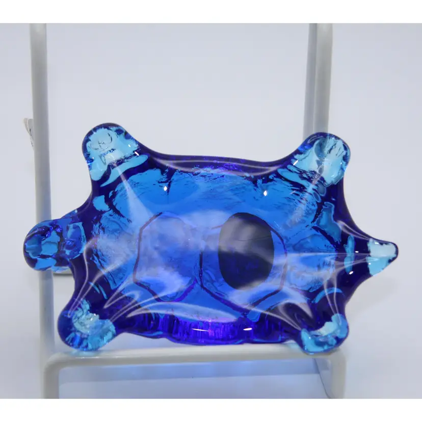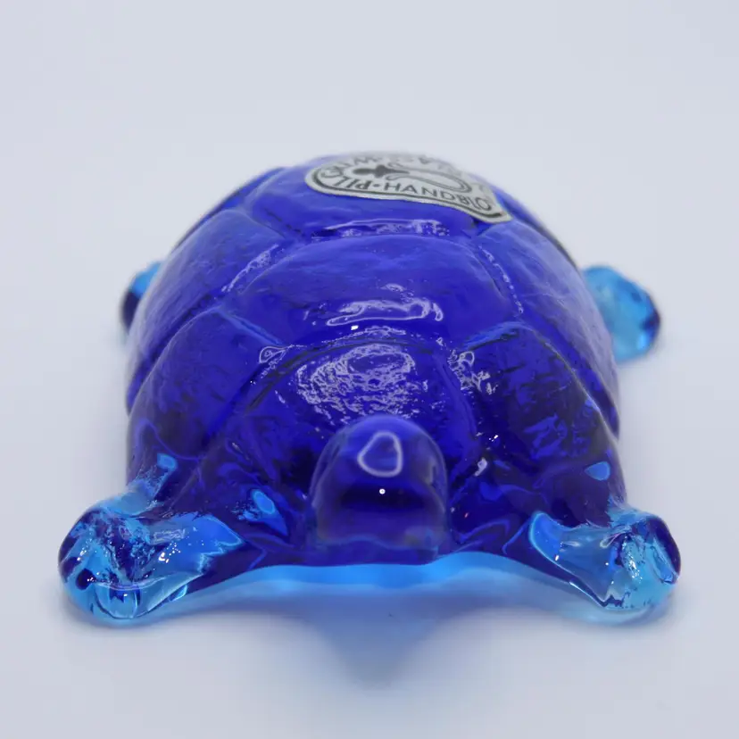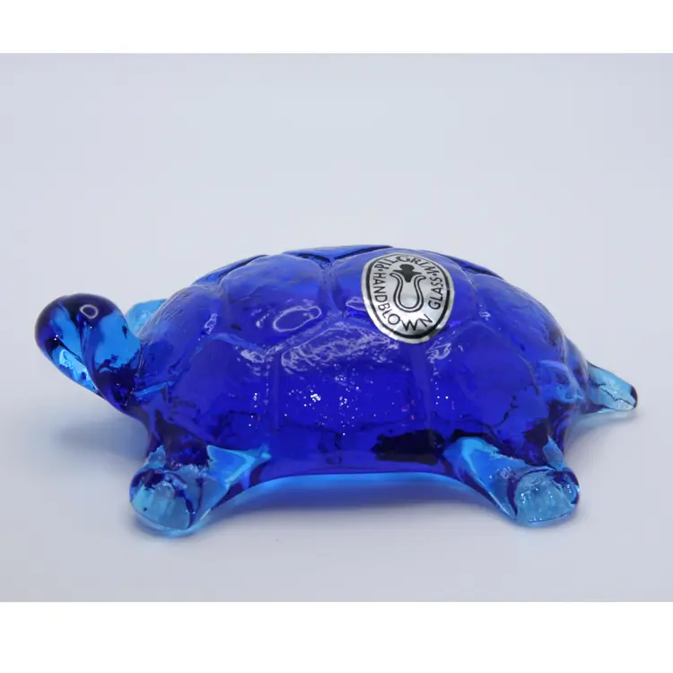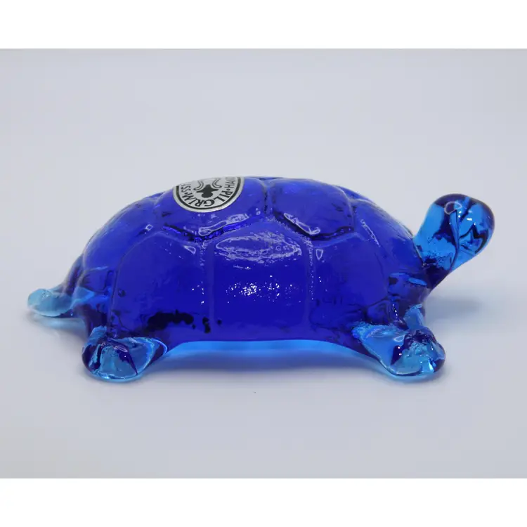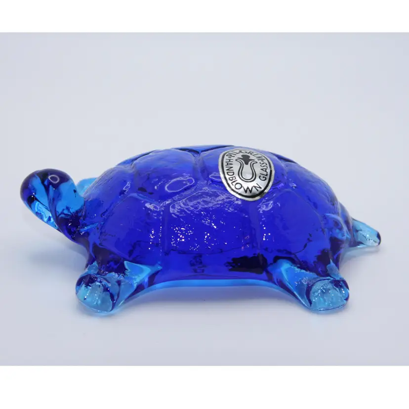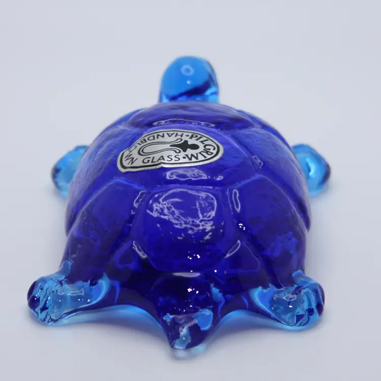 This Pilgrim glass turtle is in excellent condition with no chips, cracks or repairs! The blue color of the glass is bright and vibrant! It still has its original Pilgrim glass sticker in silver foil with black writing. This turtle is about 4-1/2 inches long, 2-3/4 inches wide and about 1 inch tall.