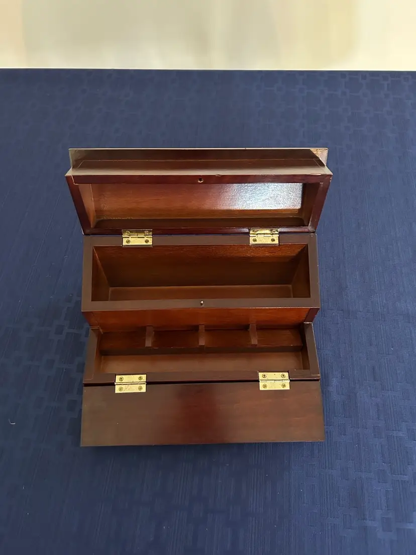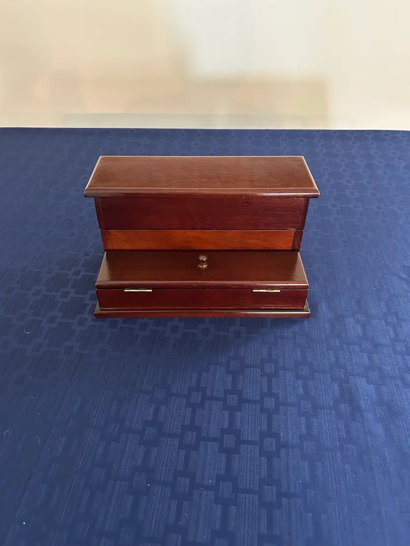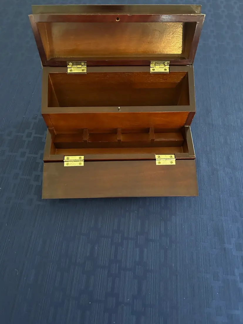 Organize your space with this vintage Bombay wooden jewelry/trinket box. Perfect for keeping jewelry organized for women or men. Excellent condition!