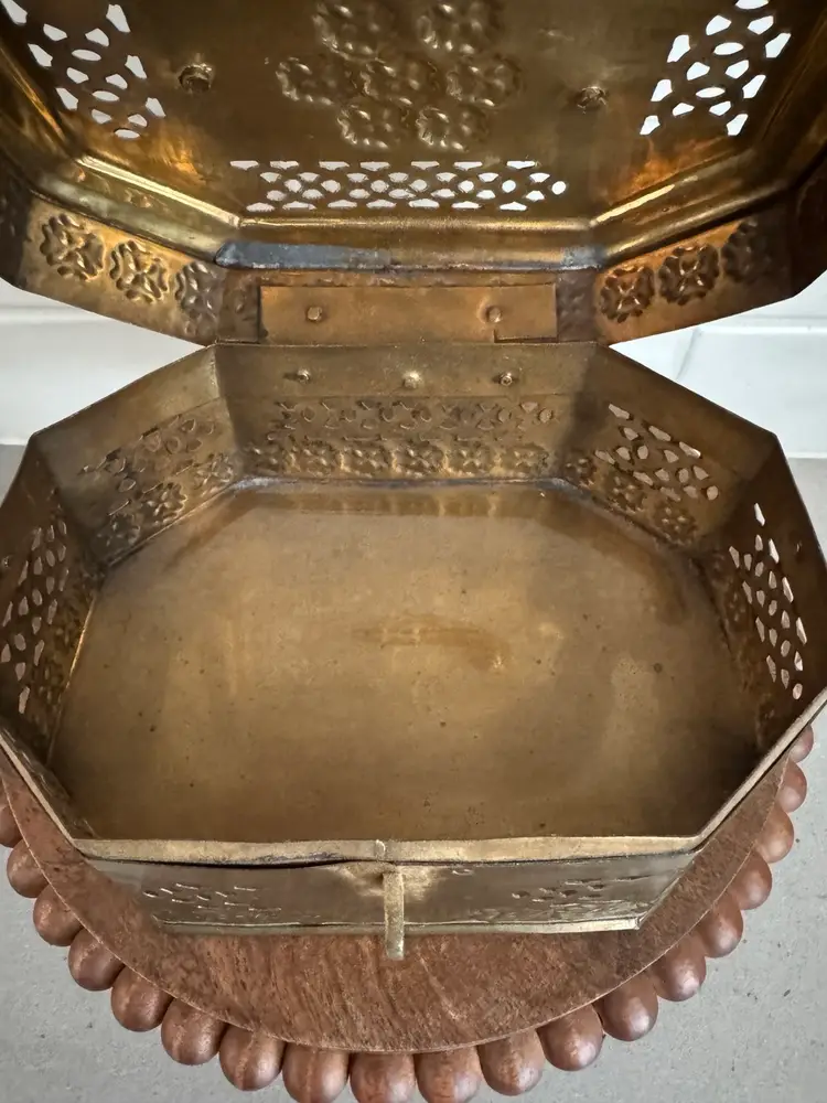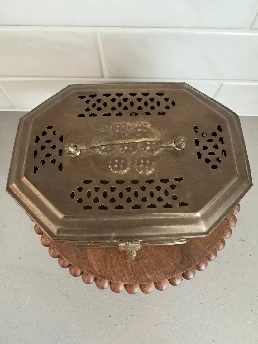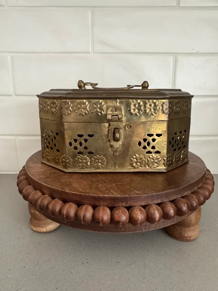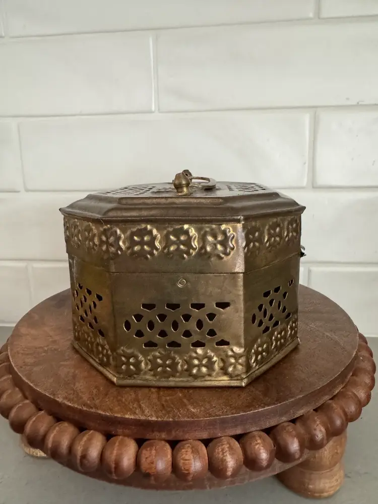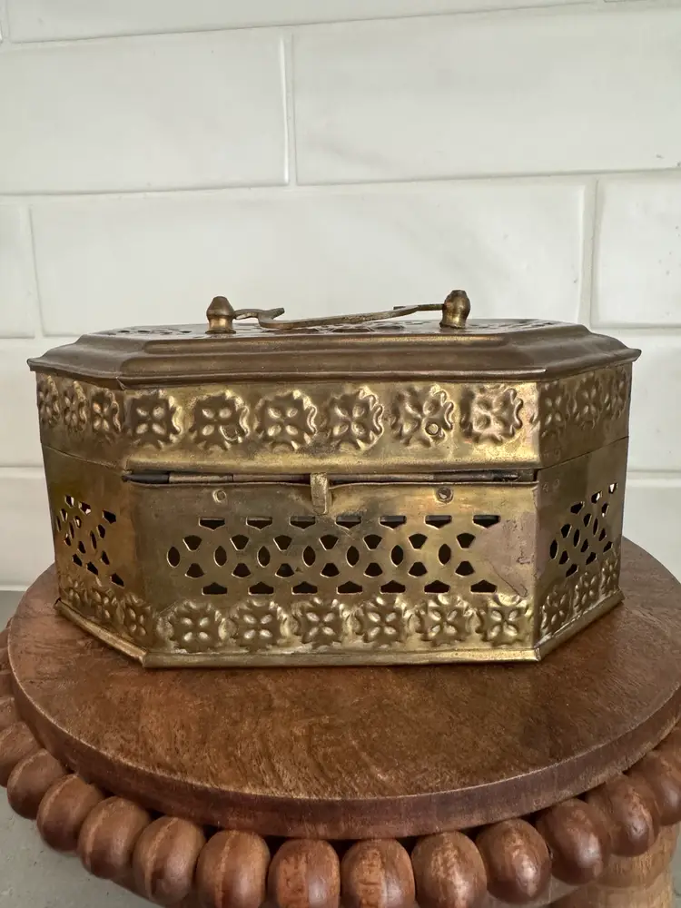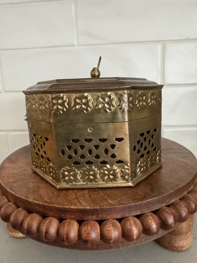 Use this delightful box as a trinket box, displayed on a shelf, or to hold potpourri. The octogon shape measures approx. 7.25 x 5.25 x 3.5.