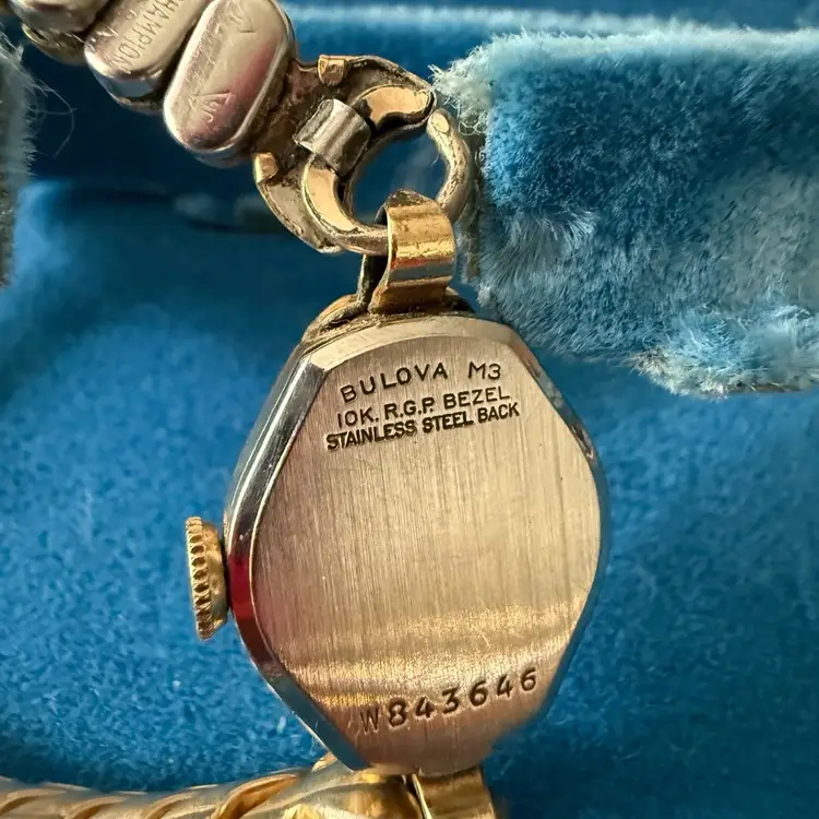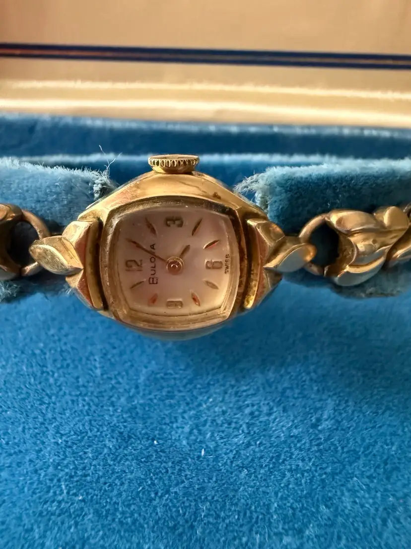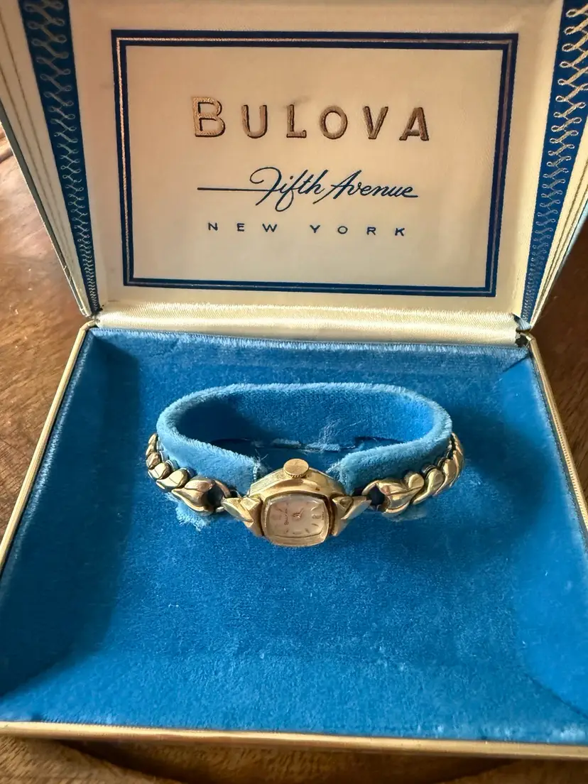 Vintage Bulova 10k R.G.P. bezel watch in original box. Gorgeous and still works.