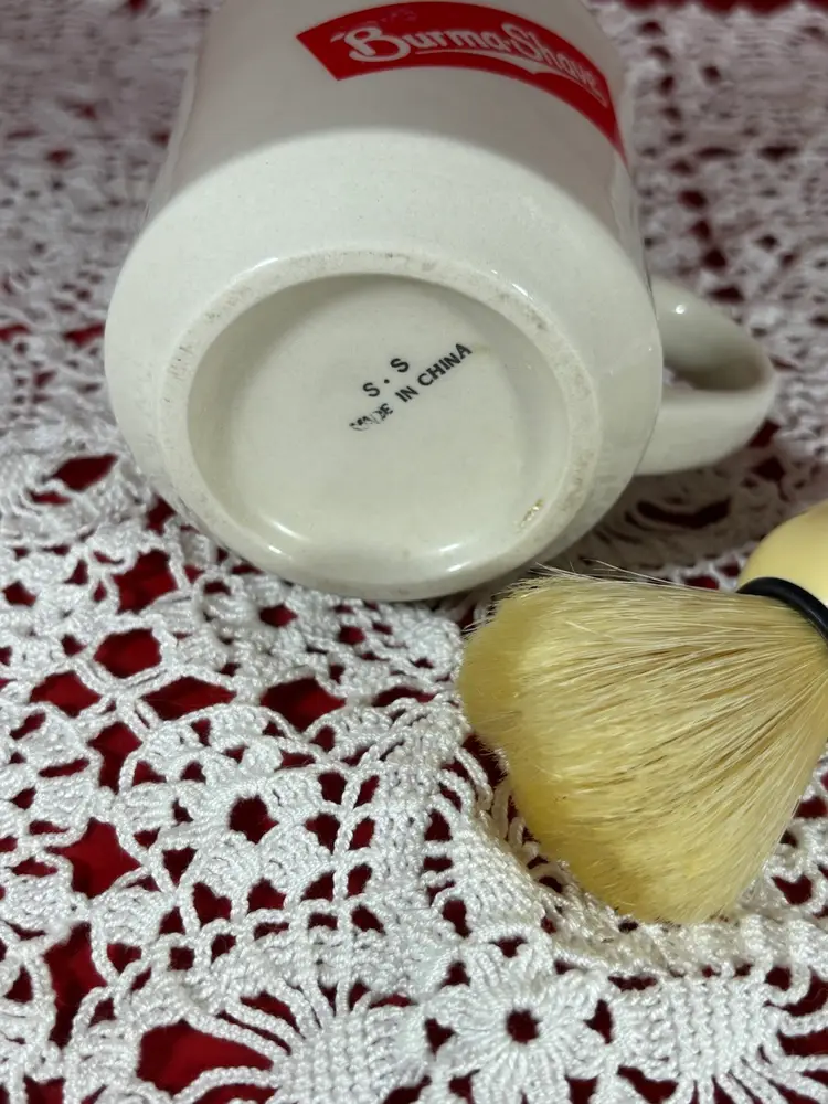 Vintage Burma shaving mug with brush, Burma- vita co.