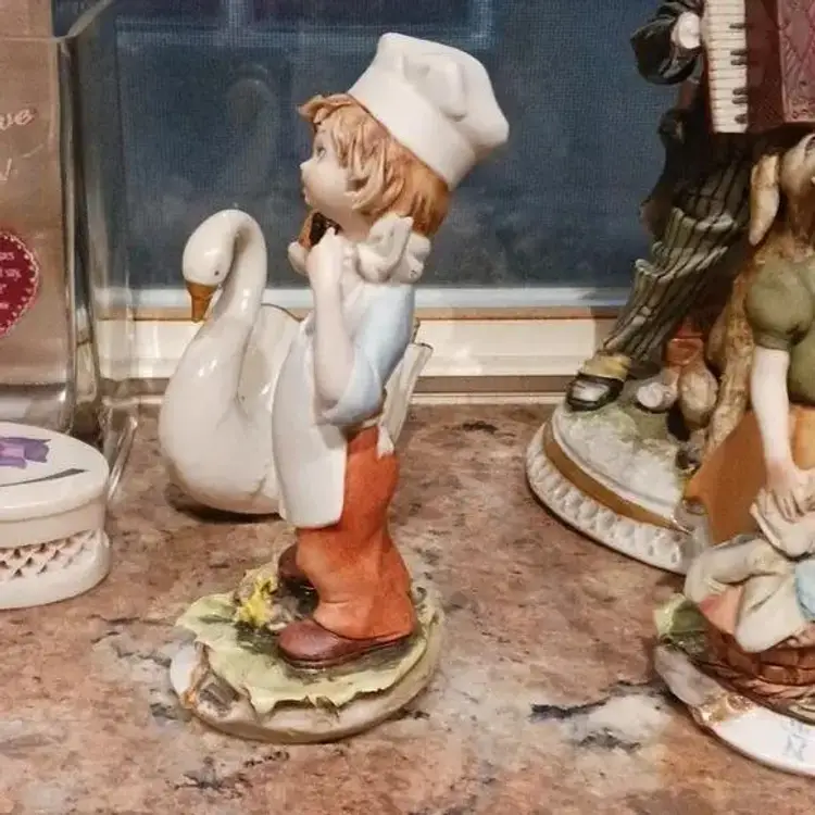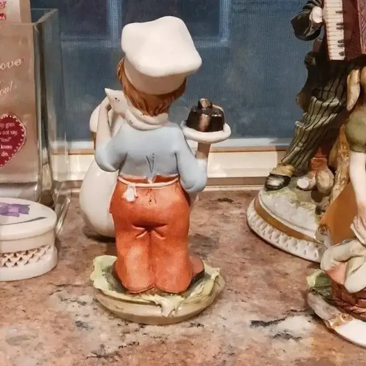 Vintage Capodimonte G Pezzato Italian Porcelain Figurine "Child Baker". Pre-owned, Good condition. Dimensions: 2 1/2" W x 3" D x 6 1/4" H