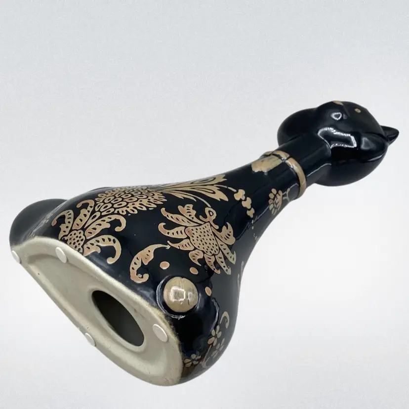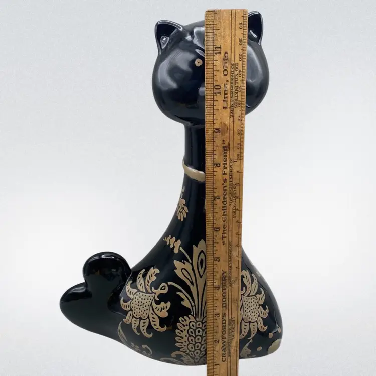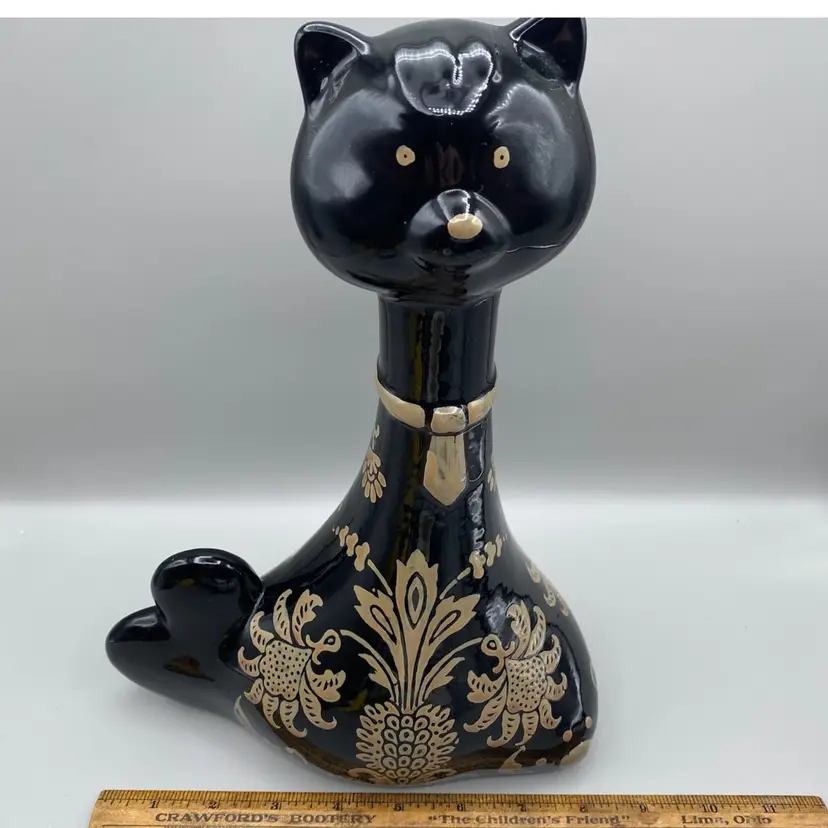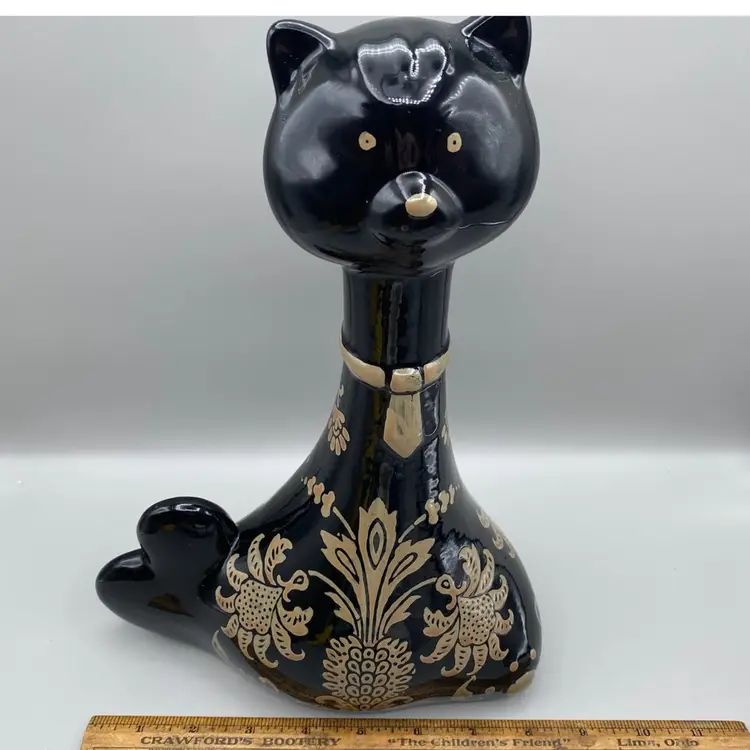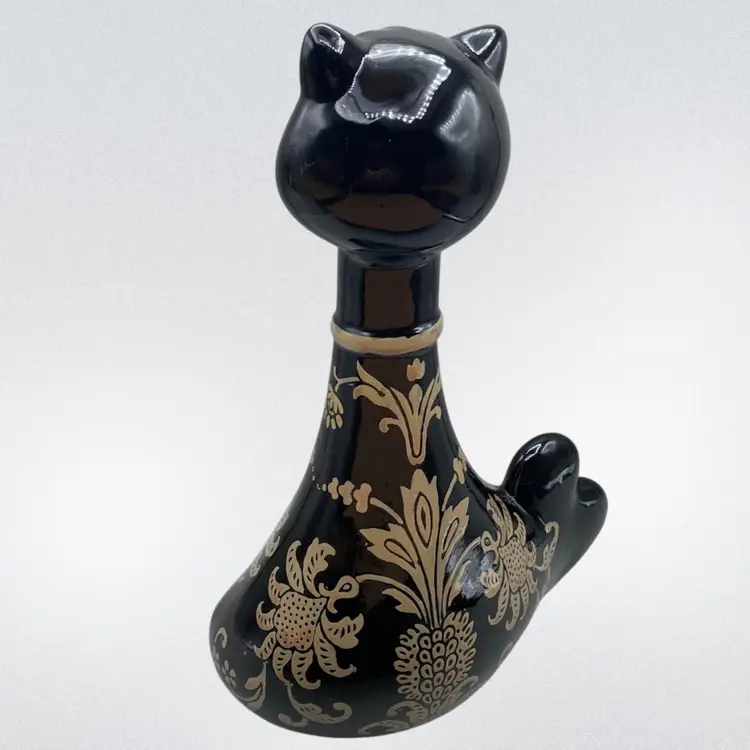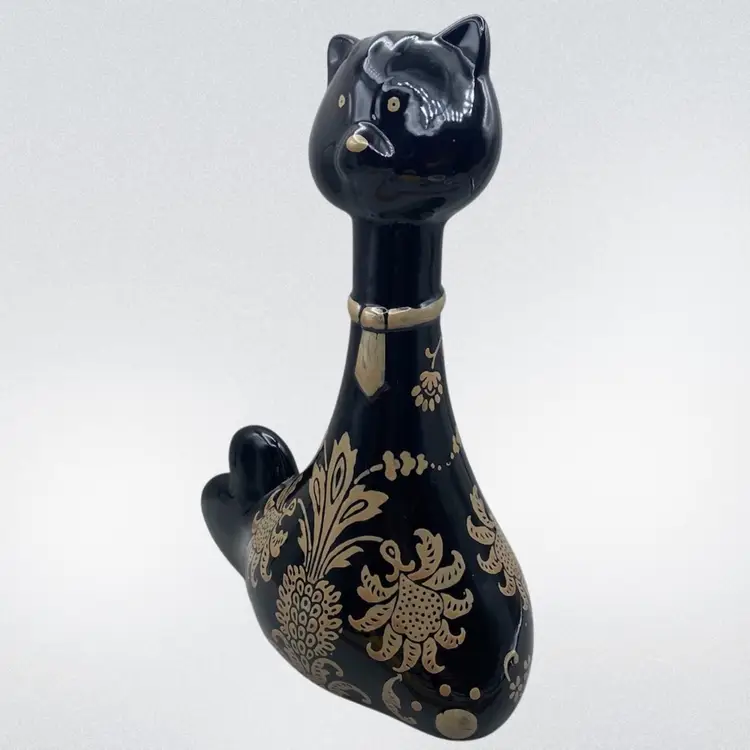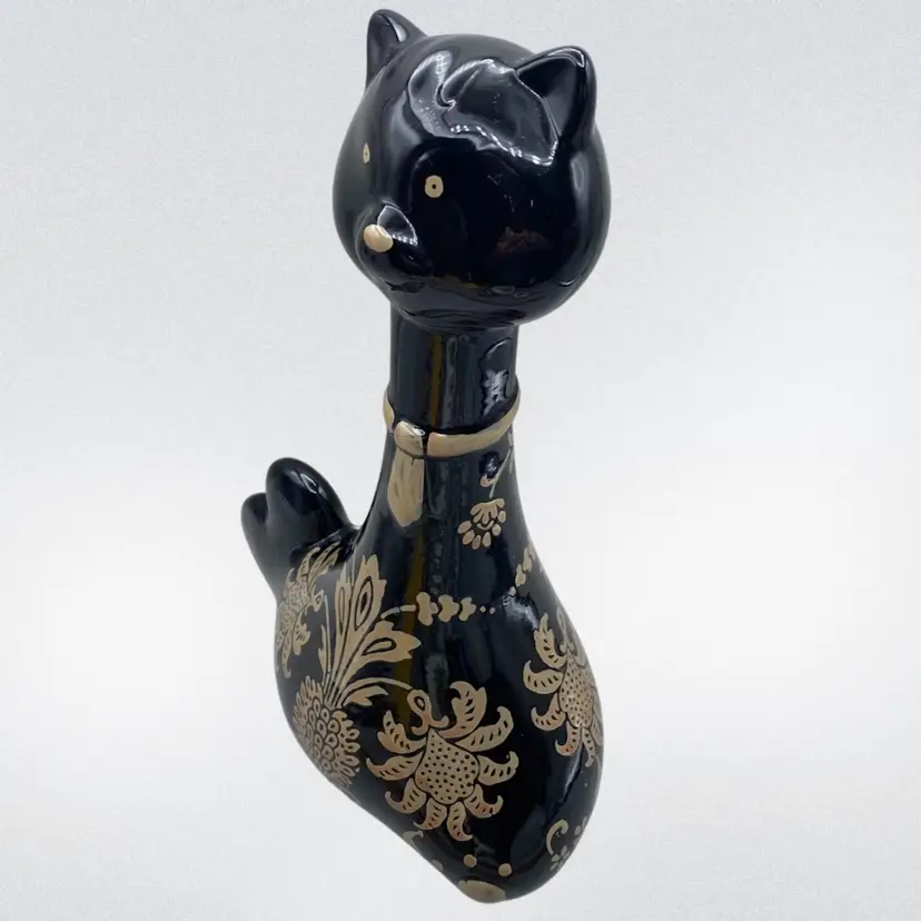 Vintage Cat Figurine Porcelain Black Tan CottageCore Granny Retro