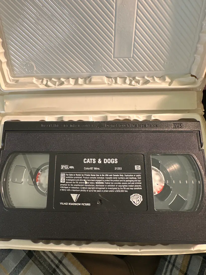 Relive the early 2000s with this classic VHS tape of the family-favorite movie "Cats & Dogs" from Warner Bros. Pictures. This action-comedy, released in 2001, pits household pets in a secret, high-stakes espionage battle to protect humanity. Perfect for collectors, nostalgia enthusiasts, or anyone looking to enjoy a beloved film in its original format.