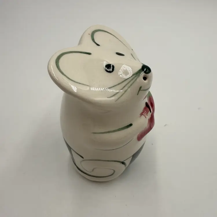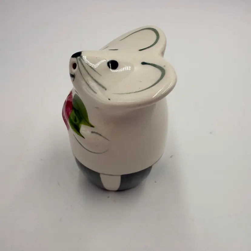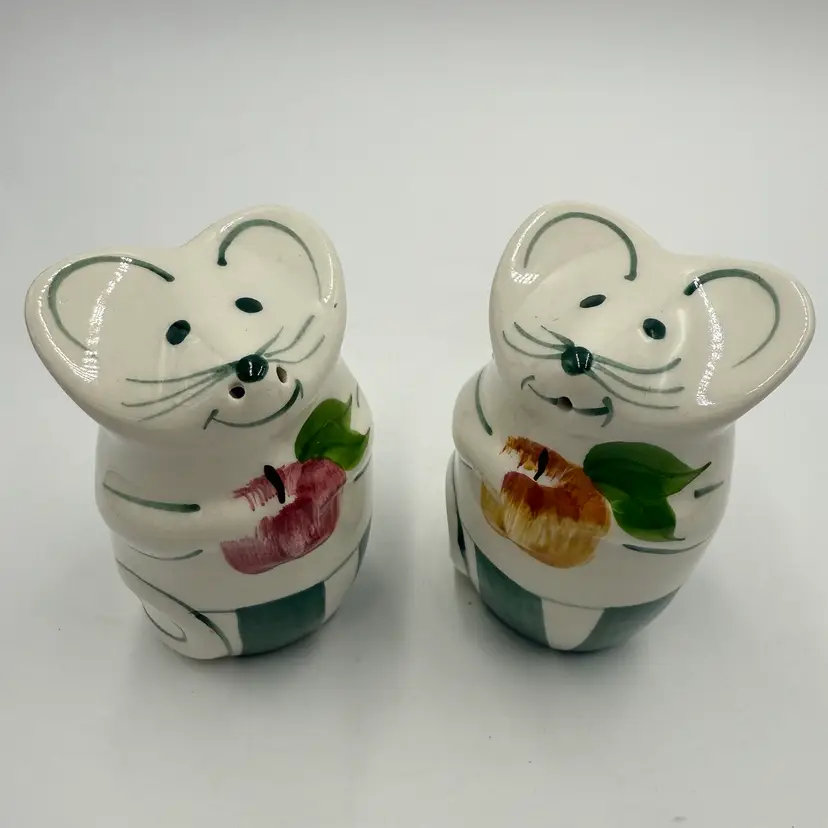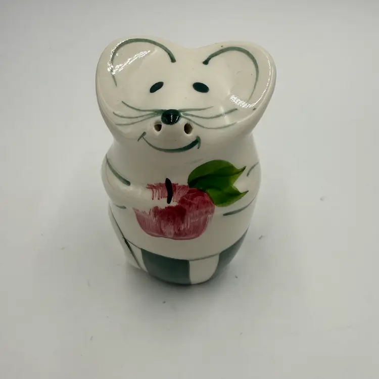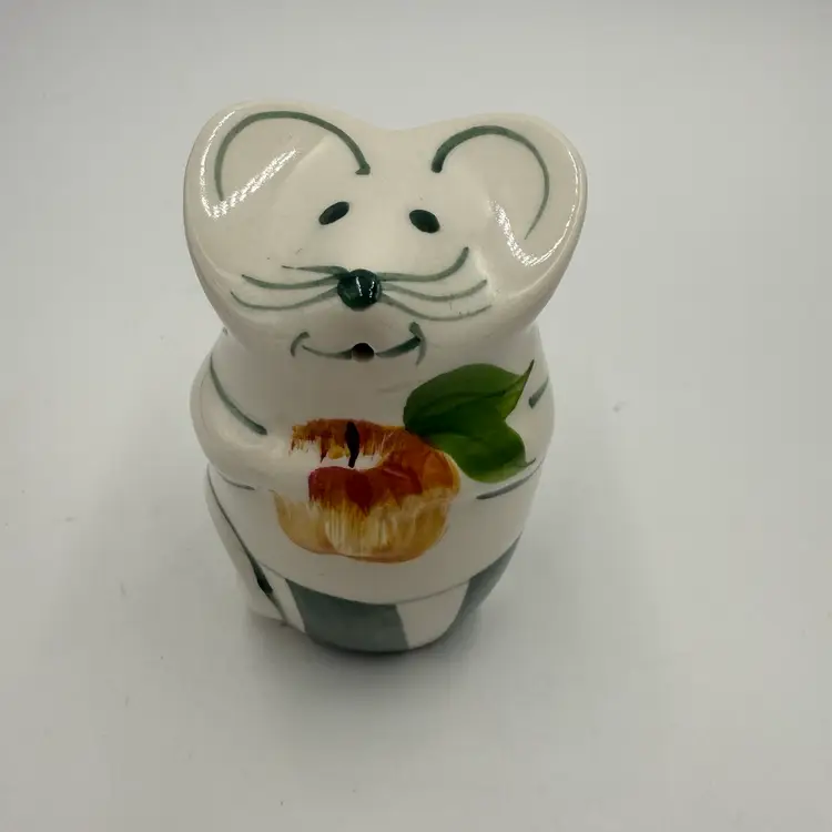 In good condition. Does not have any chips or cracks. Both have their rubber stoppers. Measures 3 3/4 inches tall and 2 3/4 inches long from ear to ear.